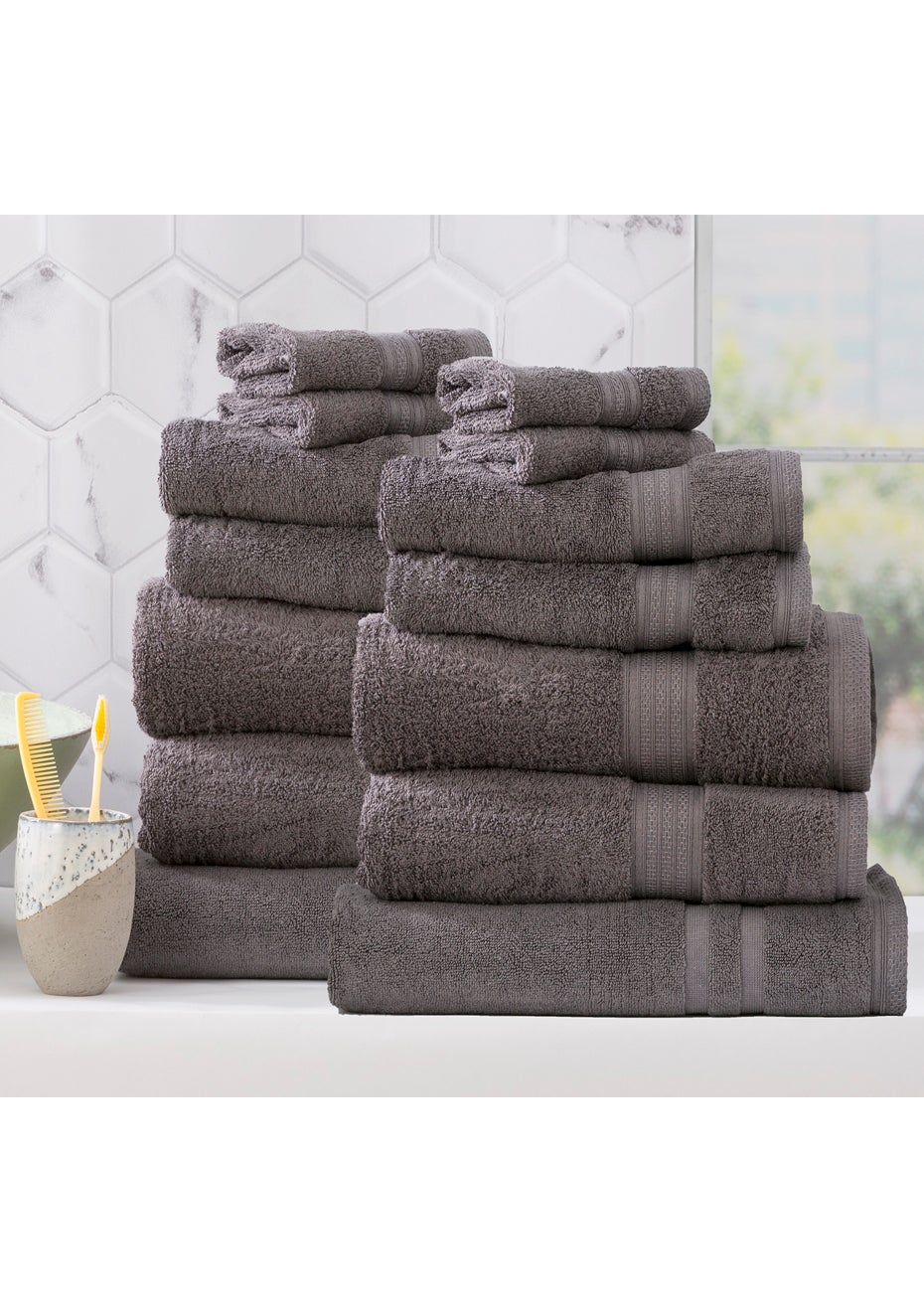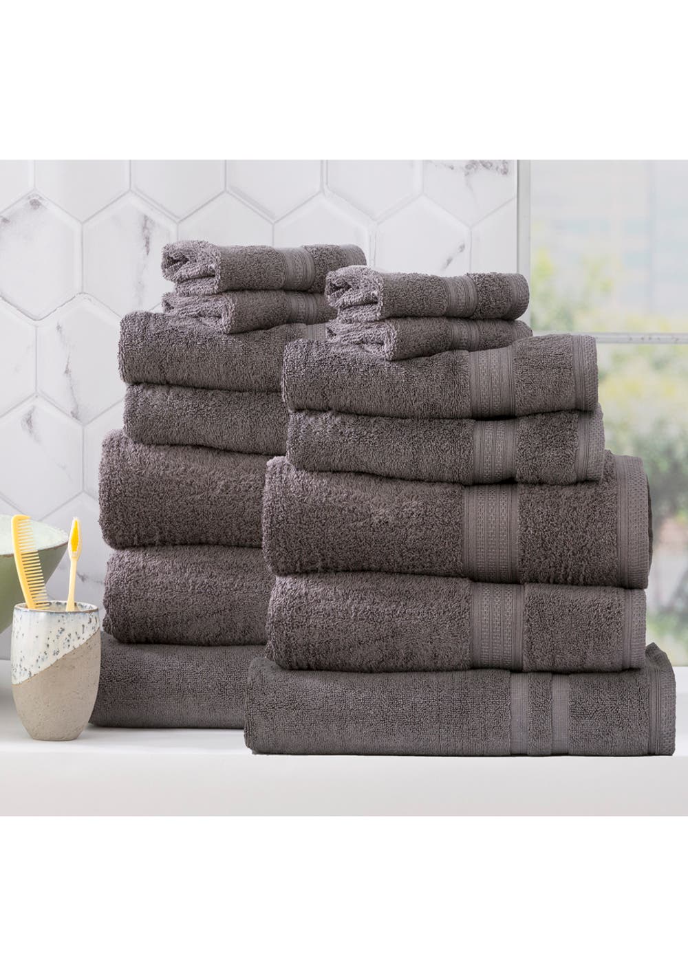 Renee Taylor Stella 650 GSM Super Soft Bamboo Cotton 14 Piece Charcoal