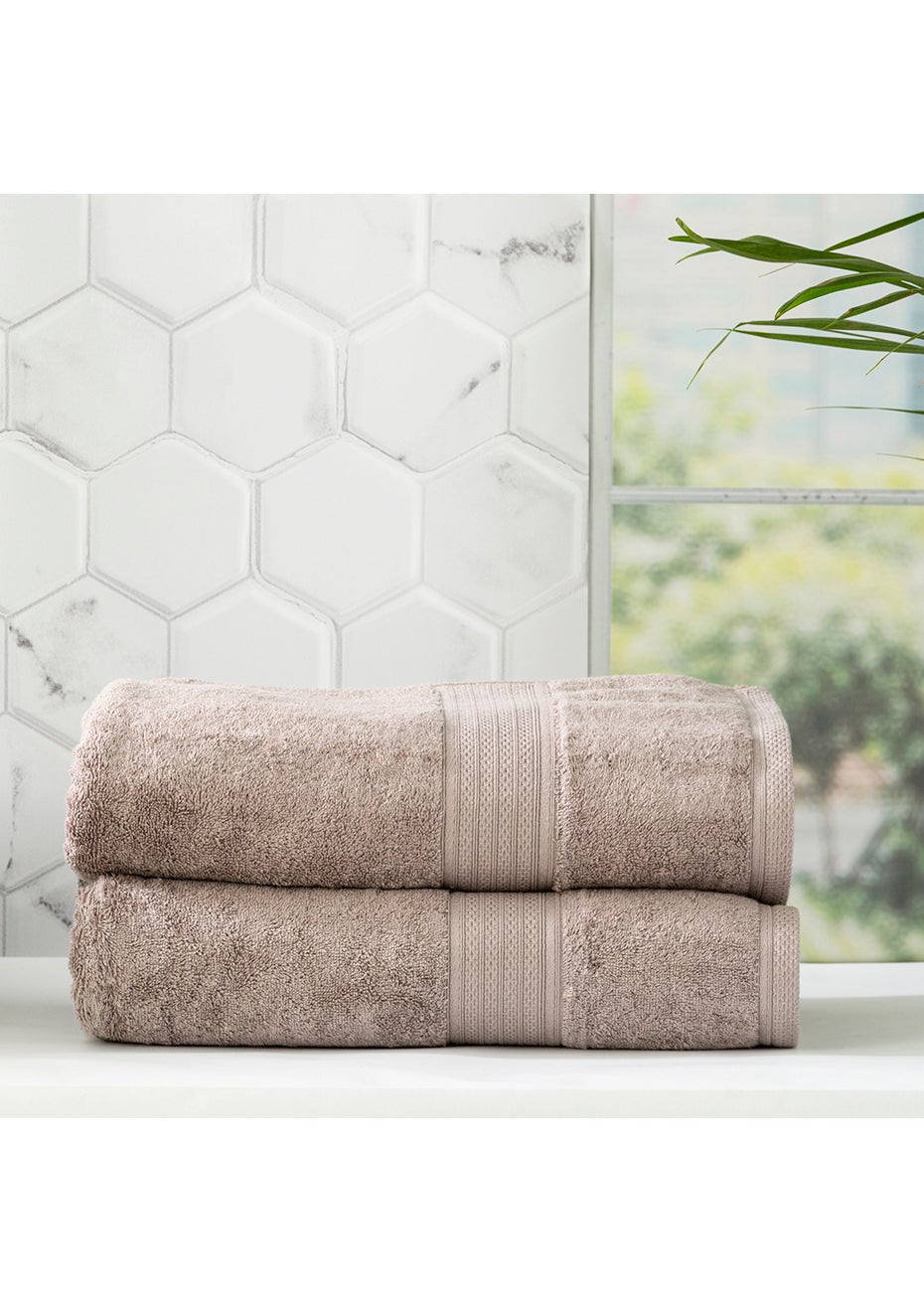 Renee Taylor Stella 650 GSM Super Soft Bamboo Cotton 2 Pack Bath Sheet Pewter