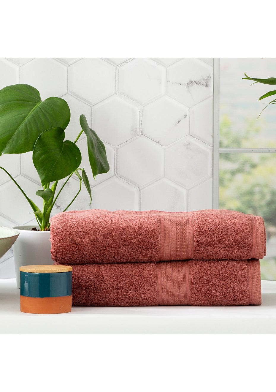 Renee Taylor Stella 650 GSM Super Soft Bamboo Cotton 2 Pack Bath Sheet Brick