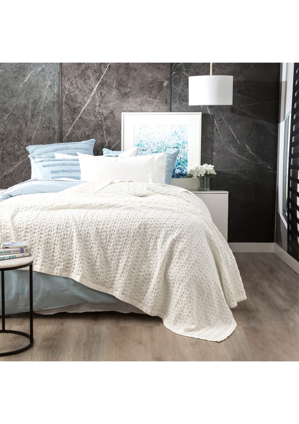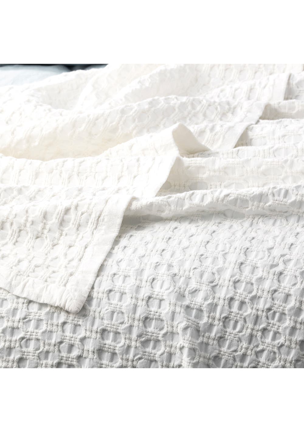 Renee Taylor Lexico Cotton Waffle Blanket Queen/King White