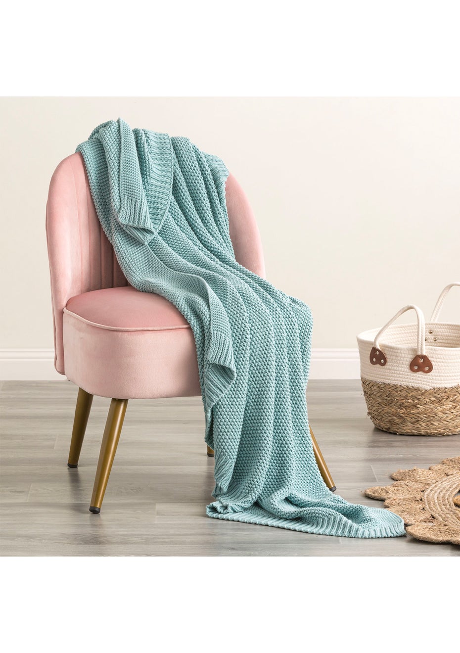 Renee Taylor Moss Seed Stitch 100% Cotton Knitted Throw 130 x 170 cm French Blue