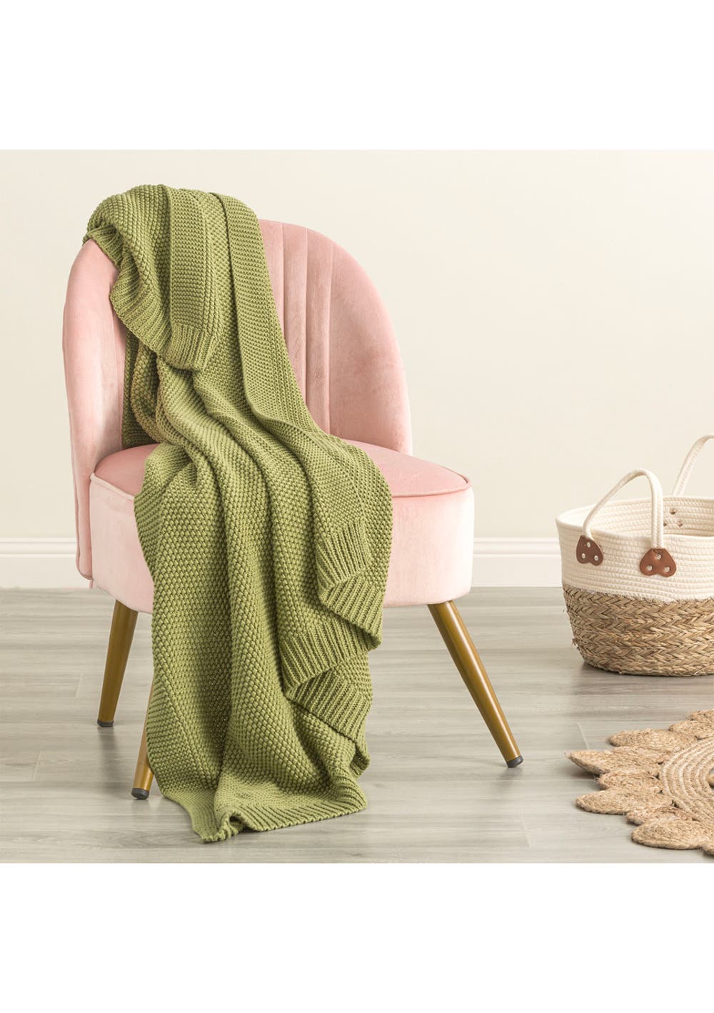 Renee Taylor Moss Seed Stitch 100% Cotton Knitted Throw 130 x 170 cm Sage