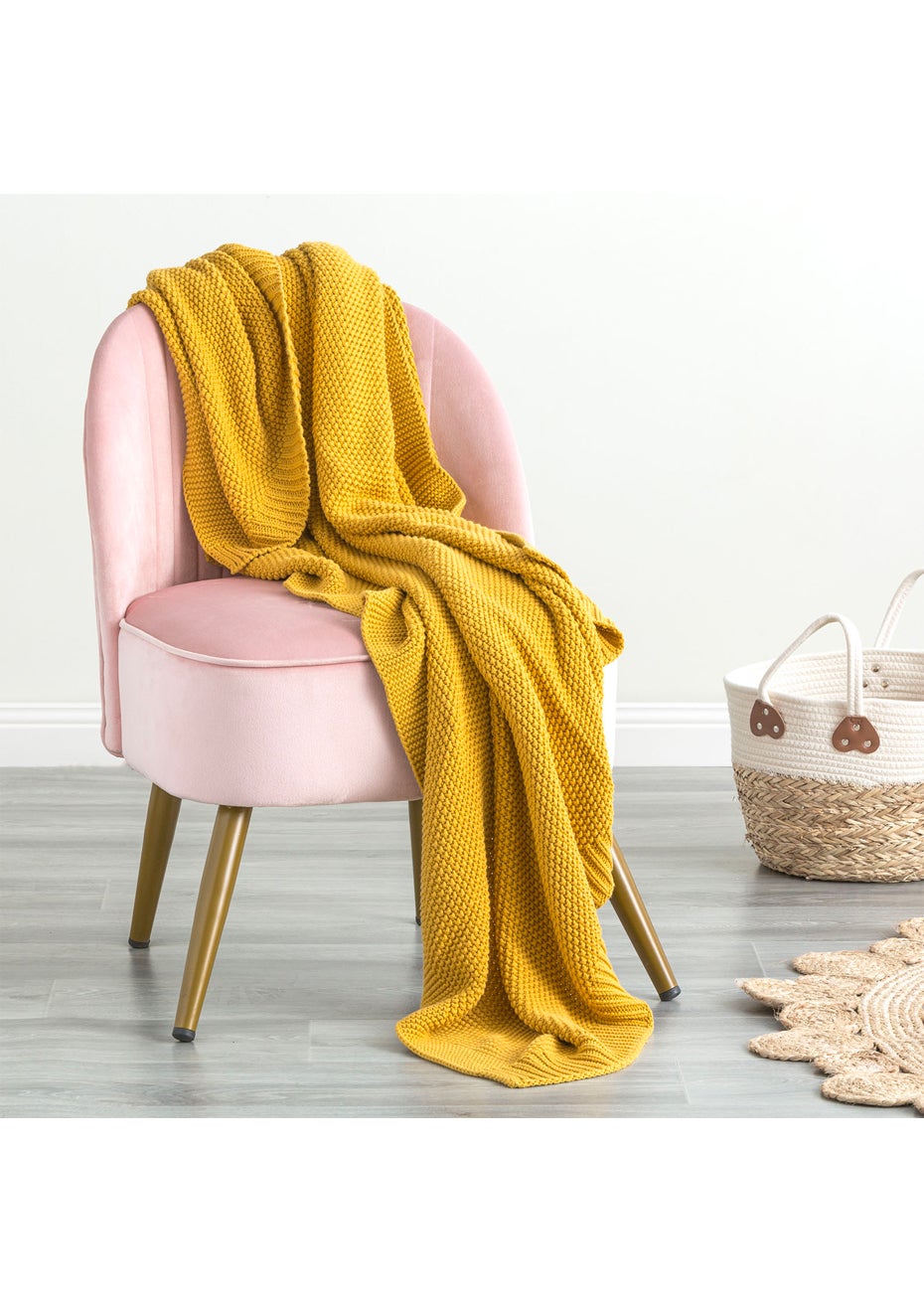 Renee Taylor Moss Seed Stitch 100% Cotton Knitted Throw 130 x 170 cm Mustard