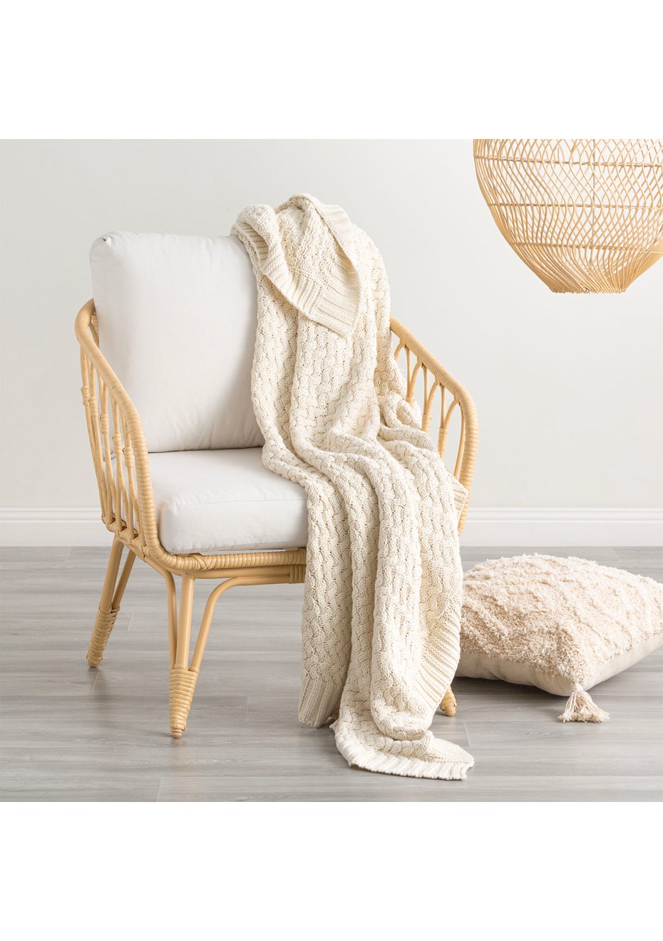 Renee Taylor Lenni Cotton Knitted Throw 130 x 170 Cm The thick and plush Lenni chunky cotton knitted throw has a homespun appearance that is cosy and welcoming. Made with a supremely soft hand-feel, they are versatile in colour and texture. Each yarn is then luxuriously engineered in a meticulous pattern and midweight feel. This throw is stylishly finished with a rib knit edge. OEKO-TEX Certified and proudly Made in Green. All our packaging is biodegradable and environment friendly. Features: - Yarn dye Cotton knitted for ultra-soft and cozy texture. -Cuddle up alone or with a companion and drift into luxurious comfort. Extra cozy and comfy. -Coordinates with a range of home décor. Perfect for homes with a modern, classic, traditional or contemporary setting. -Comfortable year-round enjoyment thanks to breathable construction. -Big enough to drape over the couch or sofa but also large enough to accent bedding in the bedroom. - OEKO-TEX Certified Meaning free from harmful chemicals. Sizes: -Throw - 130 x 170 cms. Wash Care: Cotton Launder whites, colours, and prints separately. Cold hand or machine wash on gentle cycle (30c). Do not rub, soak or wring. Do not bleach. Line dry in shade. Do not tumble dry. If desired press with a warm iron on reverse. Do not dry clean (x). Made In India Do not use dark colours on pale coloured fabrics or leathers, as colour transfer may occur. Throws are a decorative item that can infuse a space with colour and comfort. It is not advised to use them as chair or couch coverings. They are not built to sustain the kind of extreme wear and tear that a sofa can. If throws are utilised as chair coverings, over time, colours may migrate from dark to light-coloured leathers and fabrics.