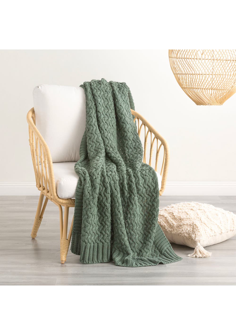 Renee Taylor Lenni 100% Cotton Knitted Throw 130 x 170 cm Forest