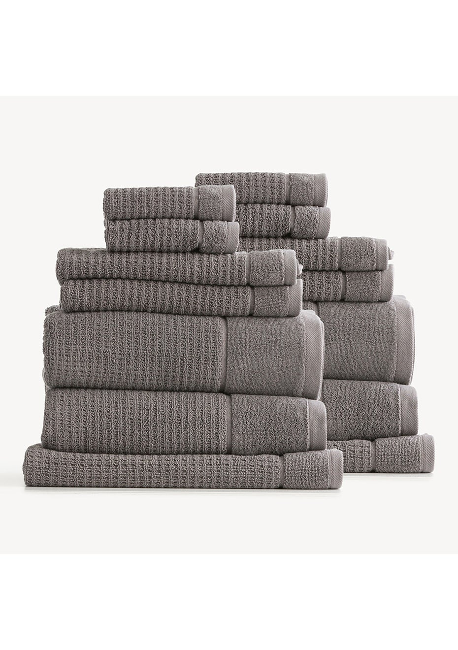 Renee Taylor Cambridge 650 GSM Textured Towels Luxurious and ultra-absorbent, this textured waffle detailing feels extra plush against the skin. Crafted with 2 ply Long staple combed cotton weighing 650 gsm (grams per square meter) making them perfect for your hands, face and body. These towels will quickly become your go-to favourites as it is a timeless classic, which suits everyday Bath. Features: -Long staple combed Cotton constructed with two-ply yarn for softness and durability. -650 GSM -The weight of a towel is a great indicator of quality and performance. -Superior absorbency and quick dry, after every wash. -Collection features a subtle waffle pattern that will suit any bathroom style. -Available in a range of classic and contemporary colours, these towels will last for years to come. Pack Contains: - 4 x Bath Towel - 70 x 140 cms - 4 x Hand towel - 40 x 60 cms - 4 x Face towel - 33 x 33 cms - 2 x Bath mat - 50 x 80 cms (900 GSM) Wash Care: Wash prior to first use. Launder whites, colours, and prints separately. Warm machine wash (40c). Do not rub, soak, or wring. Do not bleach. Line dry in shade or tumble dry warm. Do not iron. Do not dry clean (x). To maintain optimum performance of this towel, we recommend that you avoid using fabric softeners, as they decrease the towel's absorbency. If you have a pulled thread, do not pull it. Simply snip off the loop with sharp scissors. Trimming a pulled thread will avoid further pulling and will not affect the durability or performance of your towel. It is quite normal for a cotton towel to lint or fluff in the few initial washes. This will diminish with subsequent washes and tumble drying. Remember to clean out the filters of your washing machine and tumble dryer. Made in Pakistan.