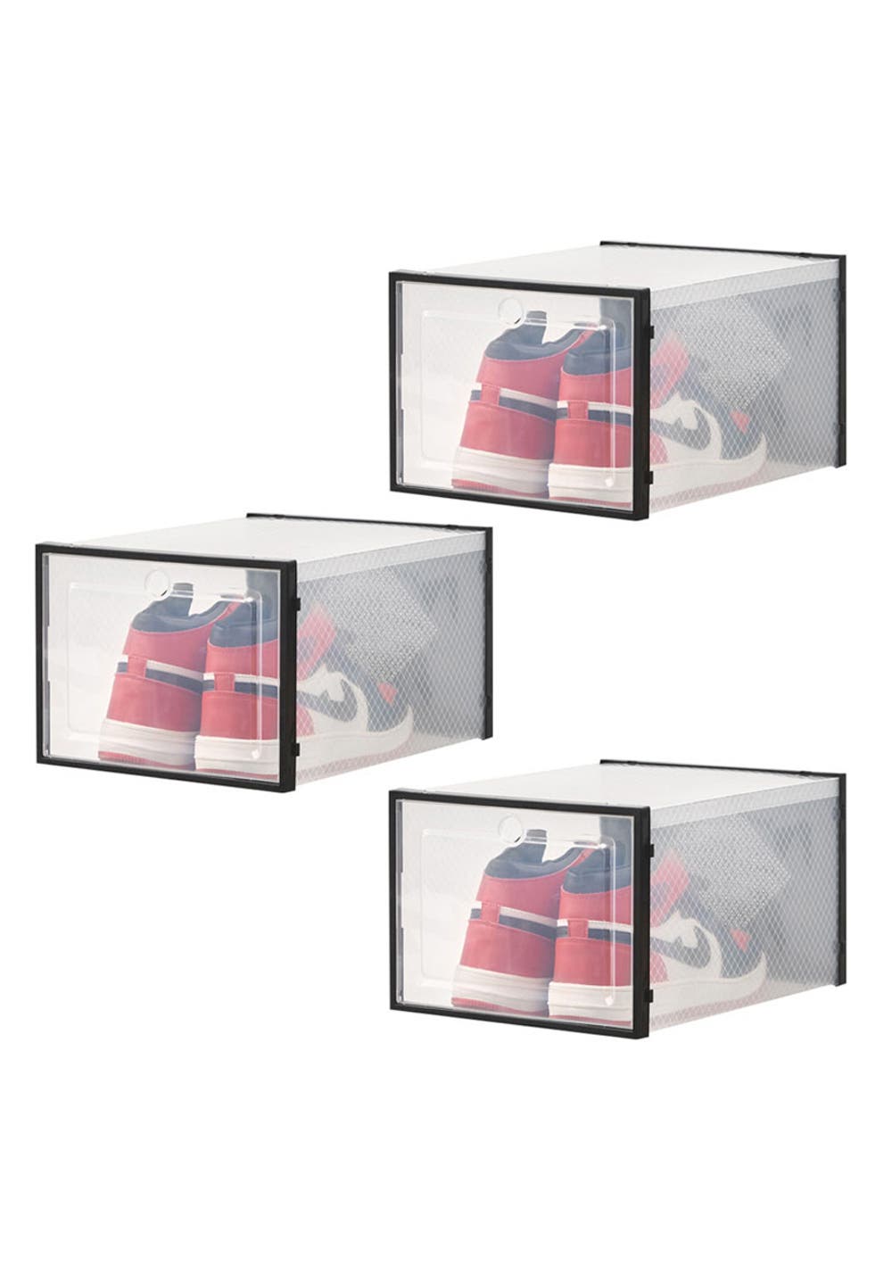 3 x Large Plastic Stackable Shoe Storage Box with Lids