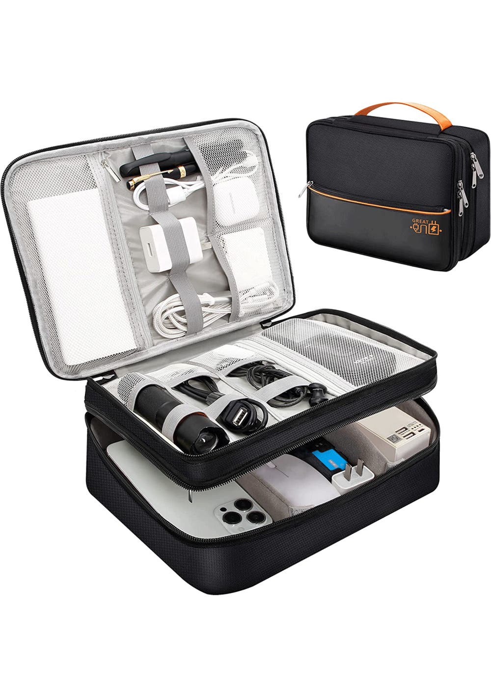 Electronics Travel Organizer Double Layer Cable Organizer Bag Watreproof Electronics Accessories Storage Bag,Black