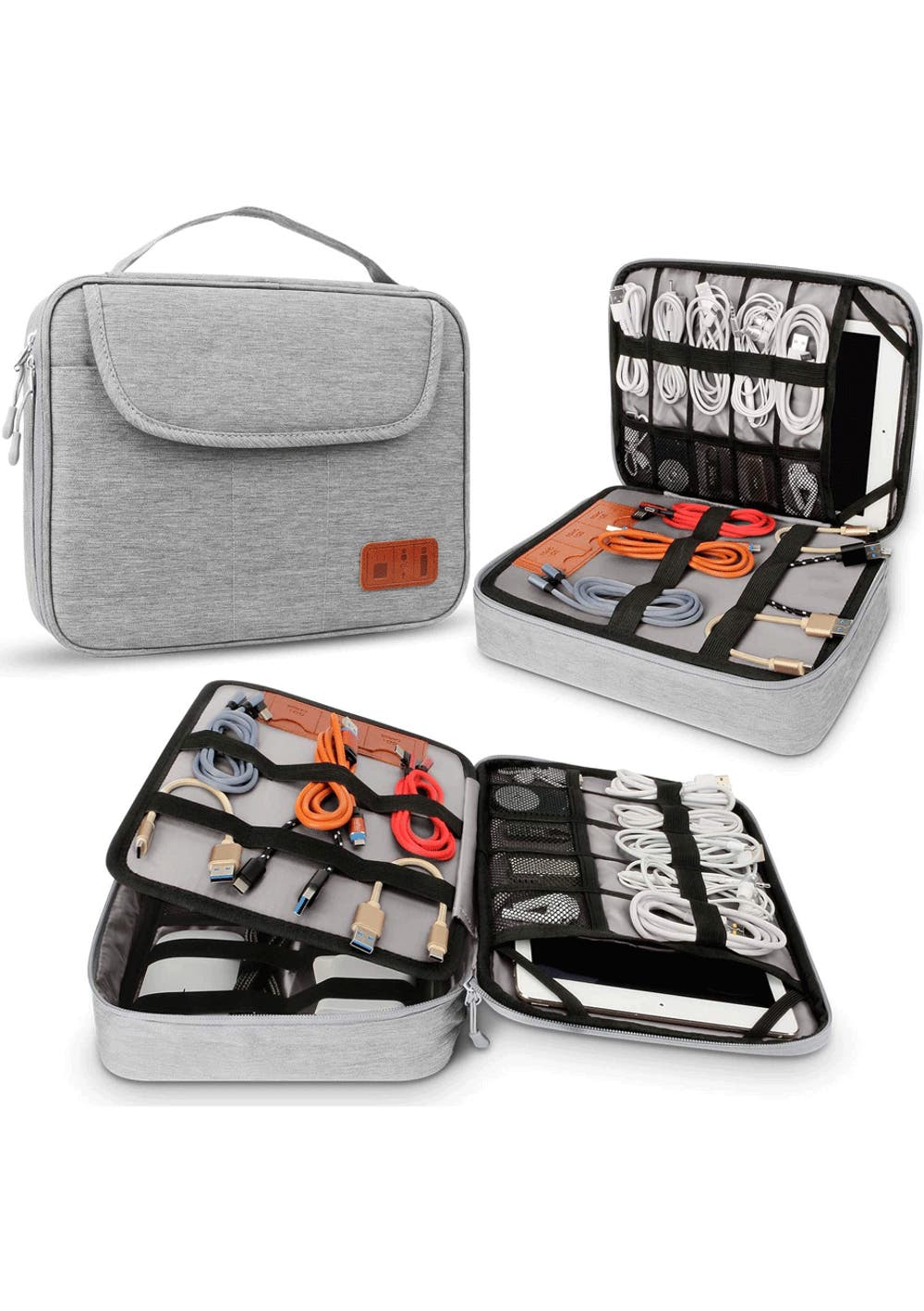 Double Layer Cable Organiser Bag Electronic Accessories Bag Travel Storage Organizer Bag,Grey