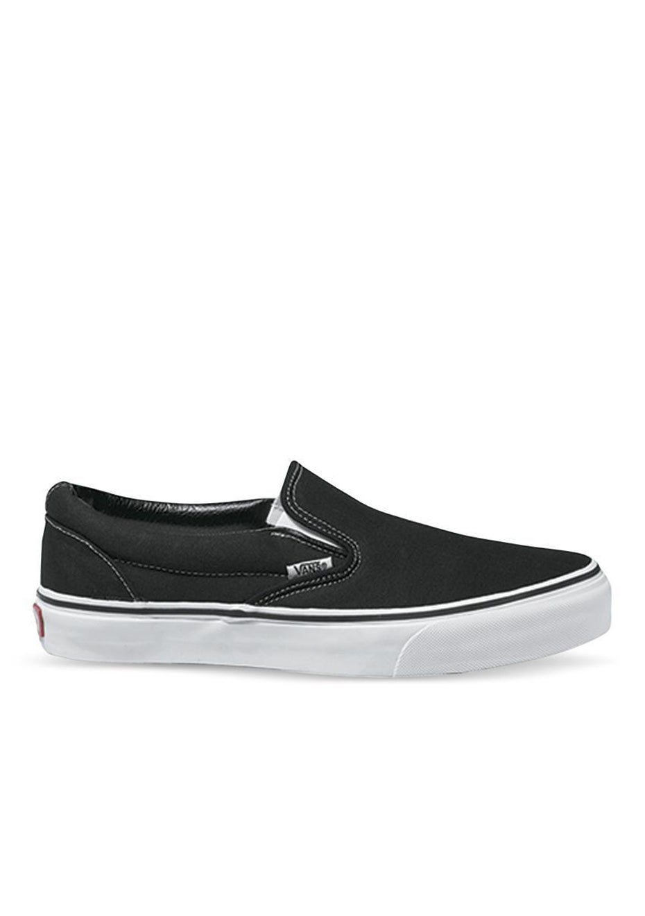 The Canvas Classic Slip-on has a low profile, slip-on canvas upper with elastic side accents, Vans flag label and Vans original Waffle Outsole.