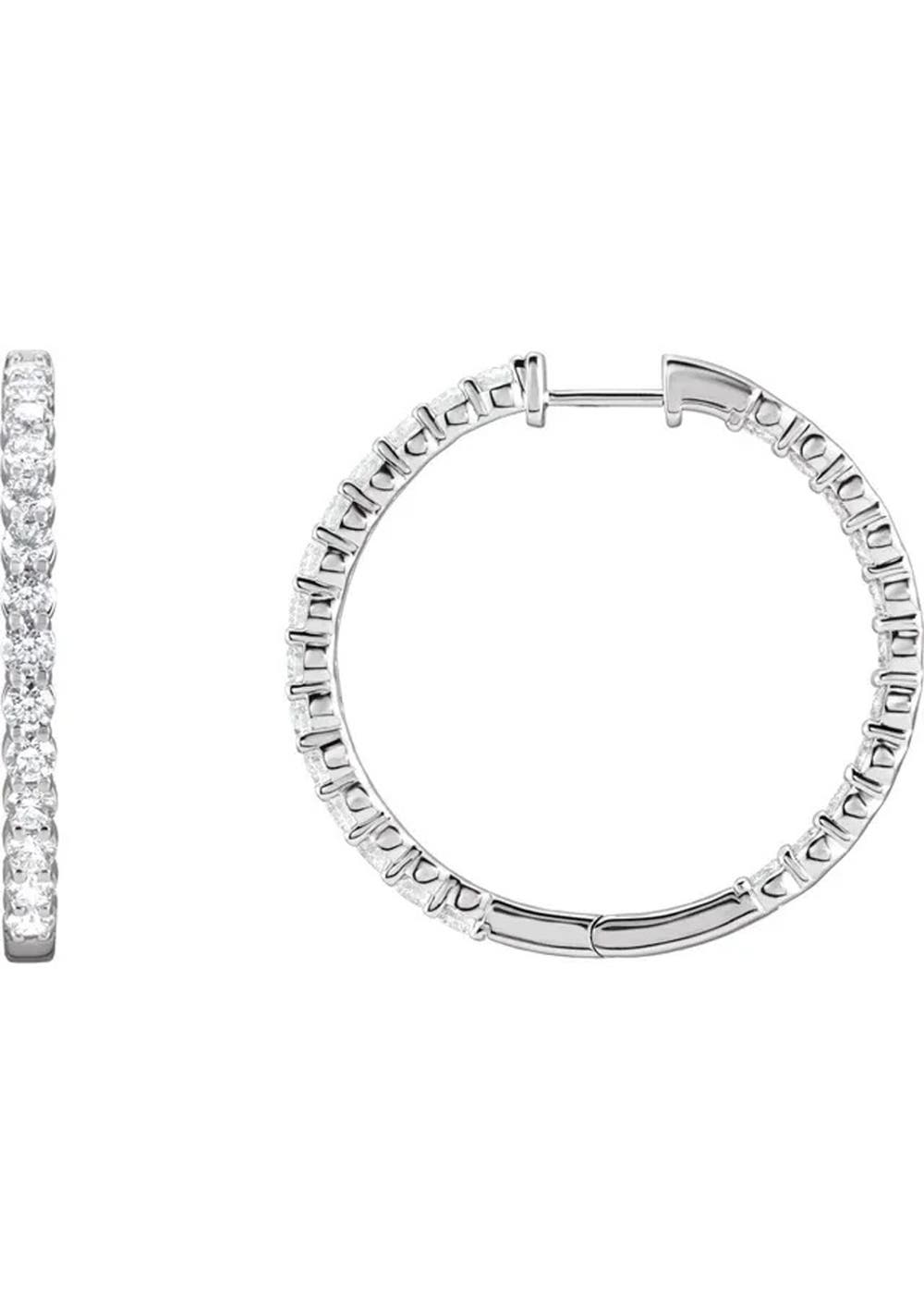 14ct White Gold Lab Grown Diamond Inside Out 36mm Hoop Earrings 4ct TW