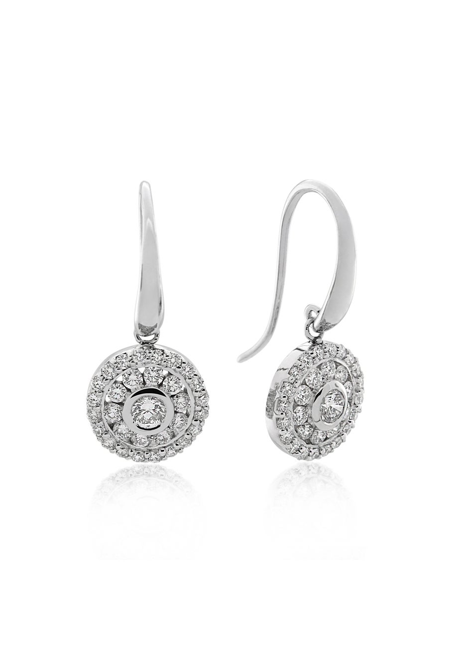 18ct White Gold Diamond Halo Drop Earrings 1.05ct TW