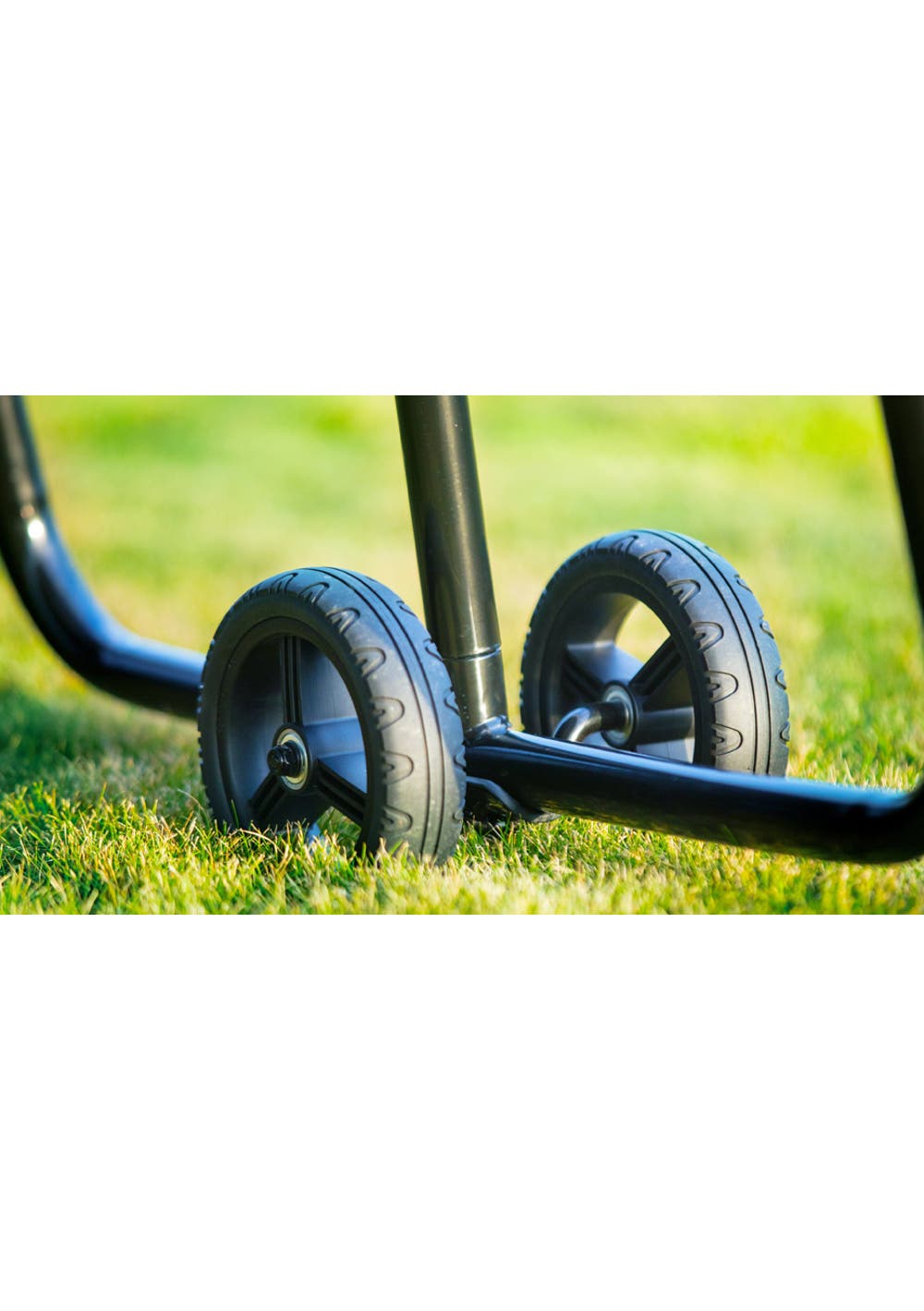 Trampoline moves are easy with Springfree's Shifting Wheels. One adult can move the trampoline when yard work needs to be done or a new backyard location is desired. Includes two pairs of wheel frames that easily slip under the frame legs. 1 year manufacturer's warranty.