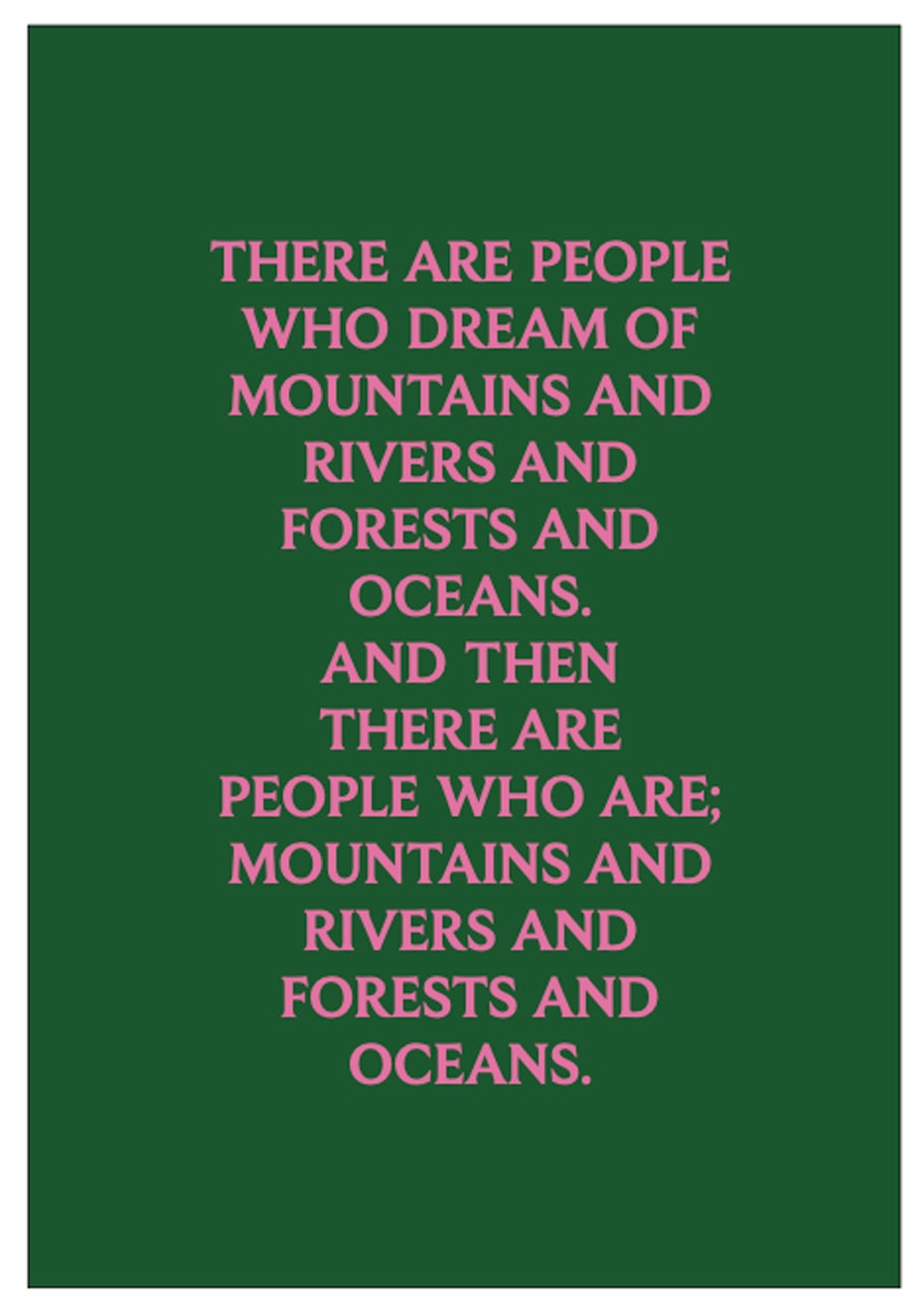 These prints hold poetry and memory close to their hearts. The colours are bright and joyful and the messages contained within both works speak to the human condition. 'There Are People', 2023, is about witnessing the essence or ahua of the people in our lives and I’ve used these metaphors to describe people. I am a person who dreams and there are some people who are and have been deep oceans and strong rivers in my life. There is also a great repetition within this work; I really wanted you to think about mountains and rivers and forests and oceans.
