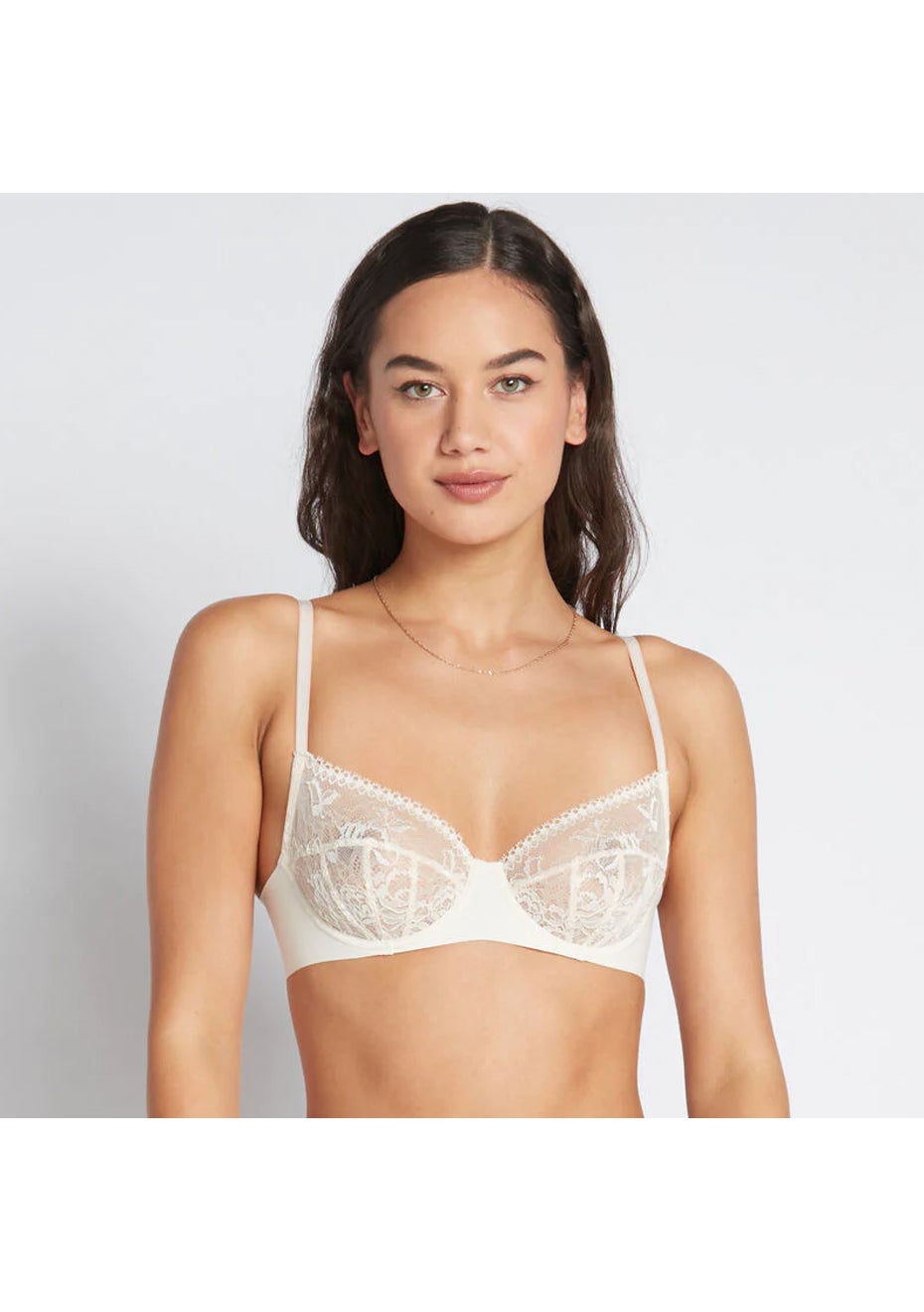 Naturally Me Underwire Bra in Gardenia and Rose Cloud is a must have bra with refined lace which provides natural support and creates a smoothing effect under clothes.