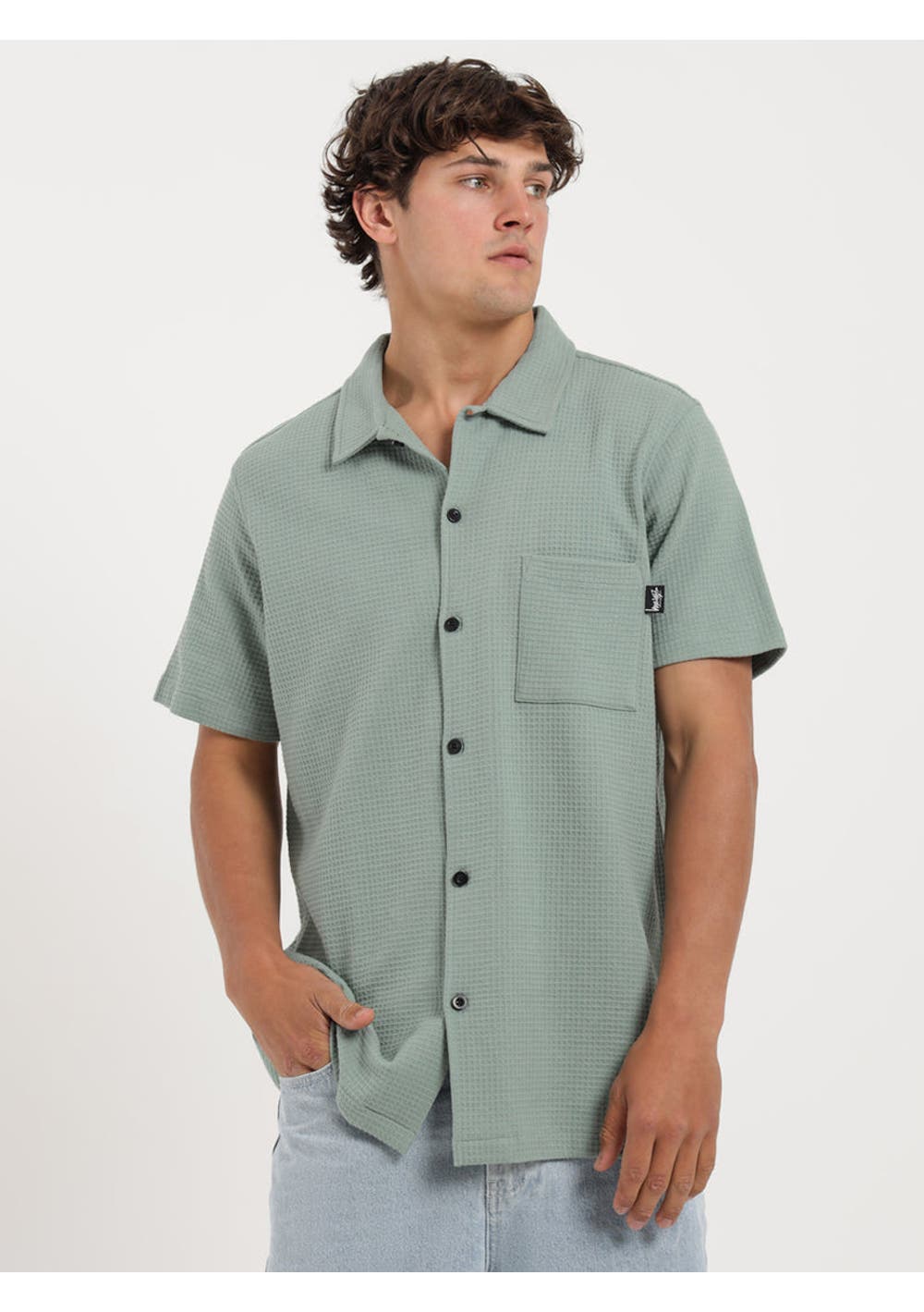 Stussy - Mens Stussy Waffle Shirt - Sage Green