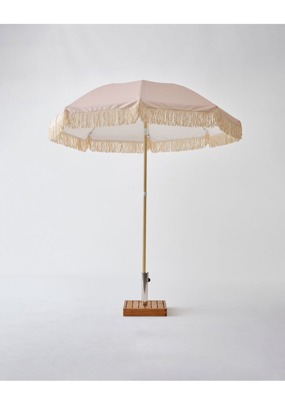 Brel Club’s signature umbrella - The Fringe. Designed from a timeless era, with durability in mind. Constructed out of aluminium & fibreglass to ensure optimal longevity while also being lightweight for easy maneuverability. The premium 300g poly canvas used for the canopy also protects you from 98% of the sun's harmful UV rays. An ageless piece that will accompany you for many summers to come. Please note: Umbrella base is not included. Canopy diameter: 180cm Height: 200cm Weight: 3.3kg Fabric: Premium 300g poly canvas Frame Construction: - 32mm aluminium pole - Zinc alloy tilt - Fiberglass ribs Features: - UPF50+ (blocks 98% of UV rays) - Waterproof & PU coated canvas fabric - 3 way tilt - Brel Club canvas carry bag - Folded dimensions: 15cm x 121cm x 4.5kg