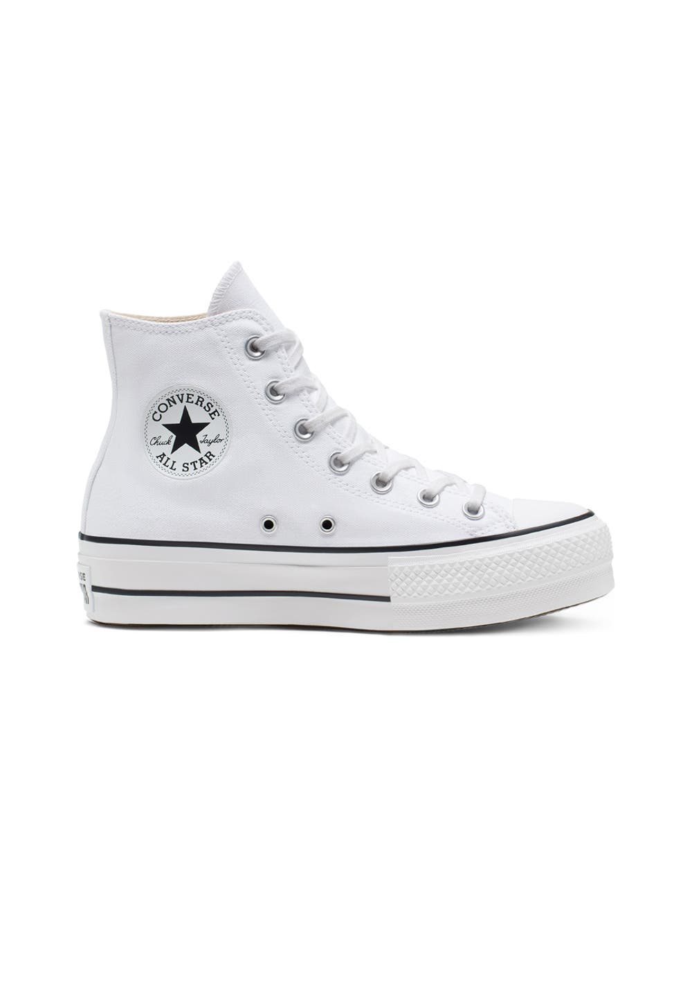 UP HIGH. A canvas upper and double-stacked sole elevates the iconic, high-top look. With classic Chuck Taylor All Star design elements, like a star ankle patch and "All Star" license plate on the heel. EVA cushioning keeps it comfortable. Get lifted. • High-top, platform shoe with canvas upper • Elevated platform sole for added height • Classic star ankle patch • Lace-up style for adjustable fit • EVA cushioning for comfort