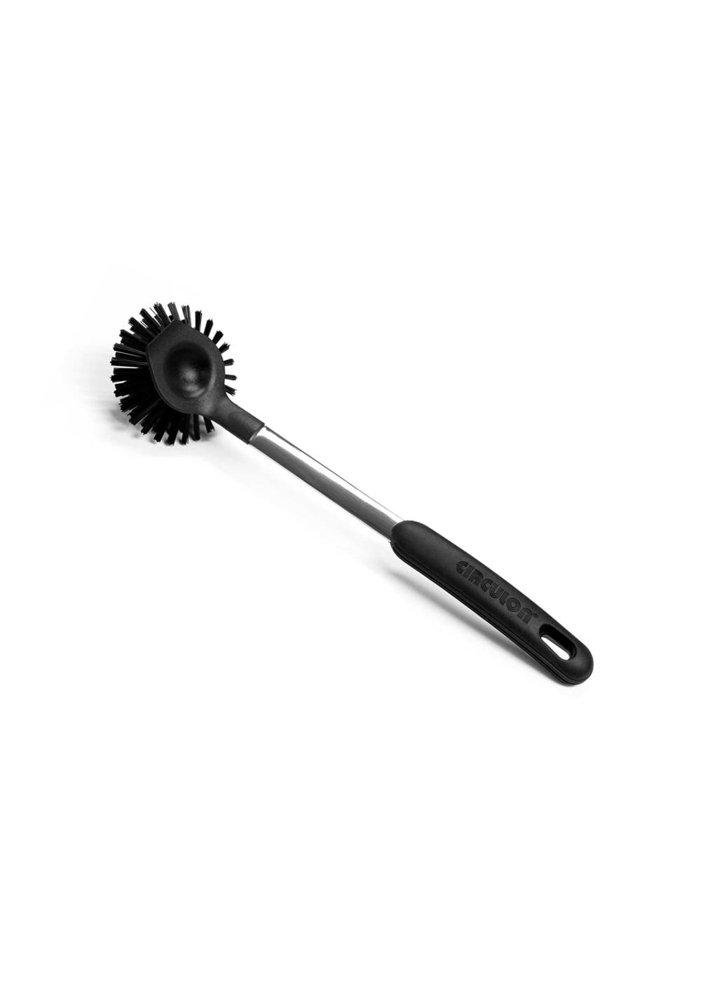 With high quality stainless steel construction and special heat-resistant nylon bristles, this brush will thoroughly clean your pan and help prolong the life of your nonstick surfaces. The handle features an ergonomic curved design for a confident grip and a tapered edge scraping head for removing tough residue.