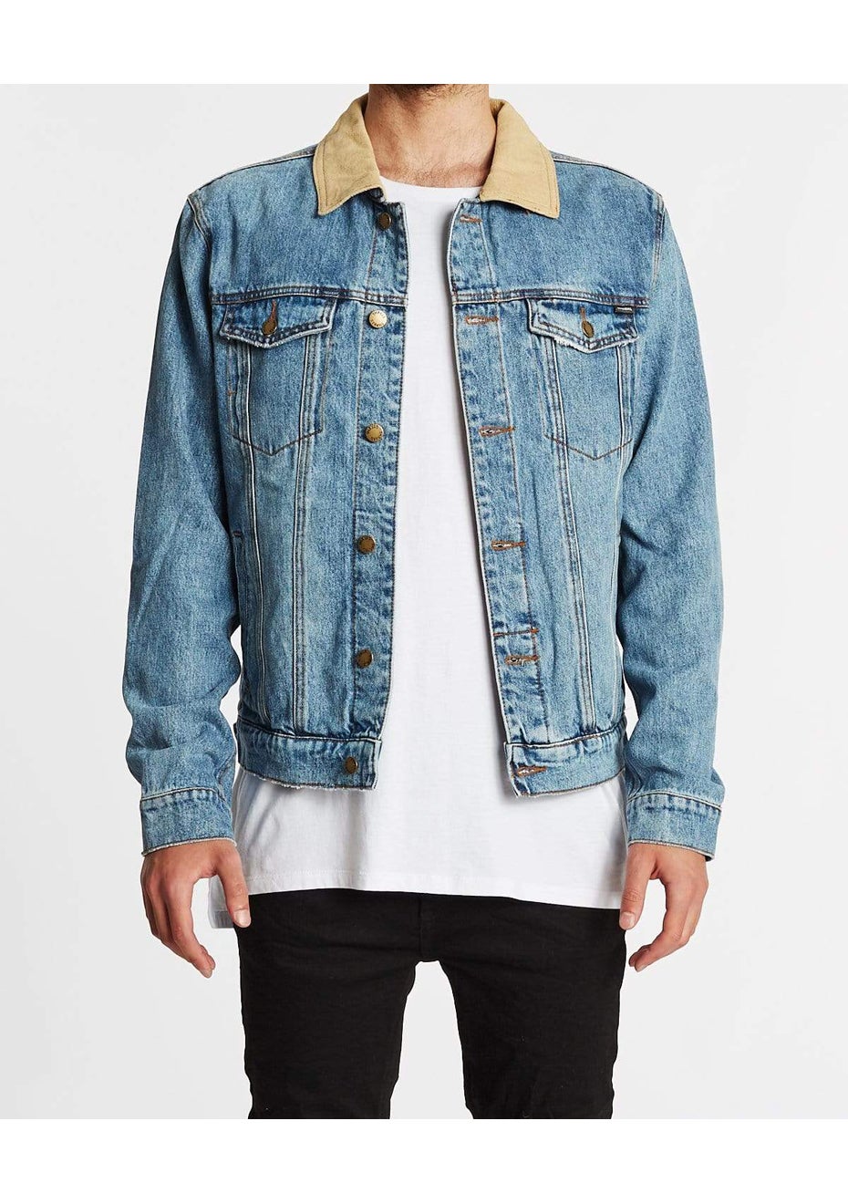 Thrills - Mens Wanderer Denim Jacket with Tan Cordouray Collar