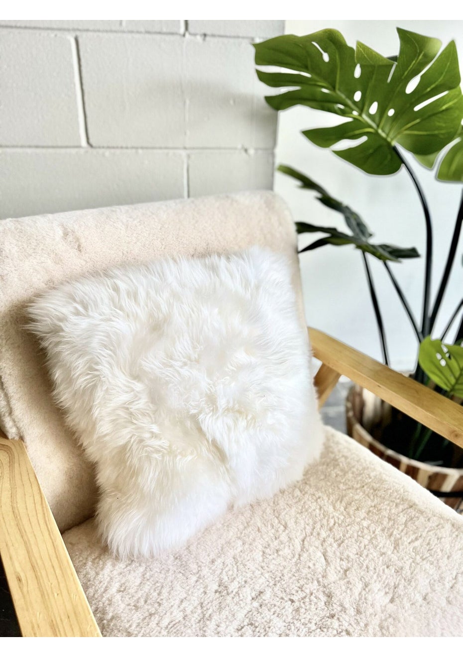 Square Long Wool Cushion Cover - Natural White 45cm