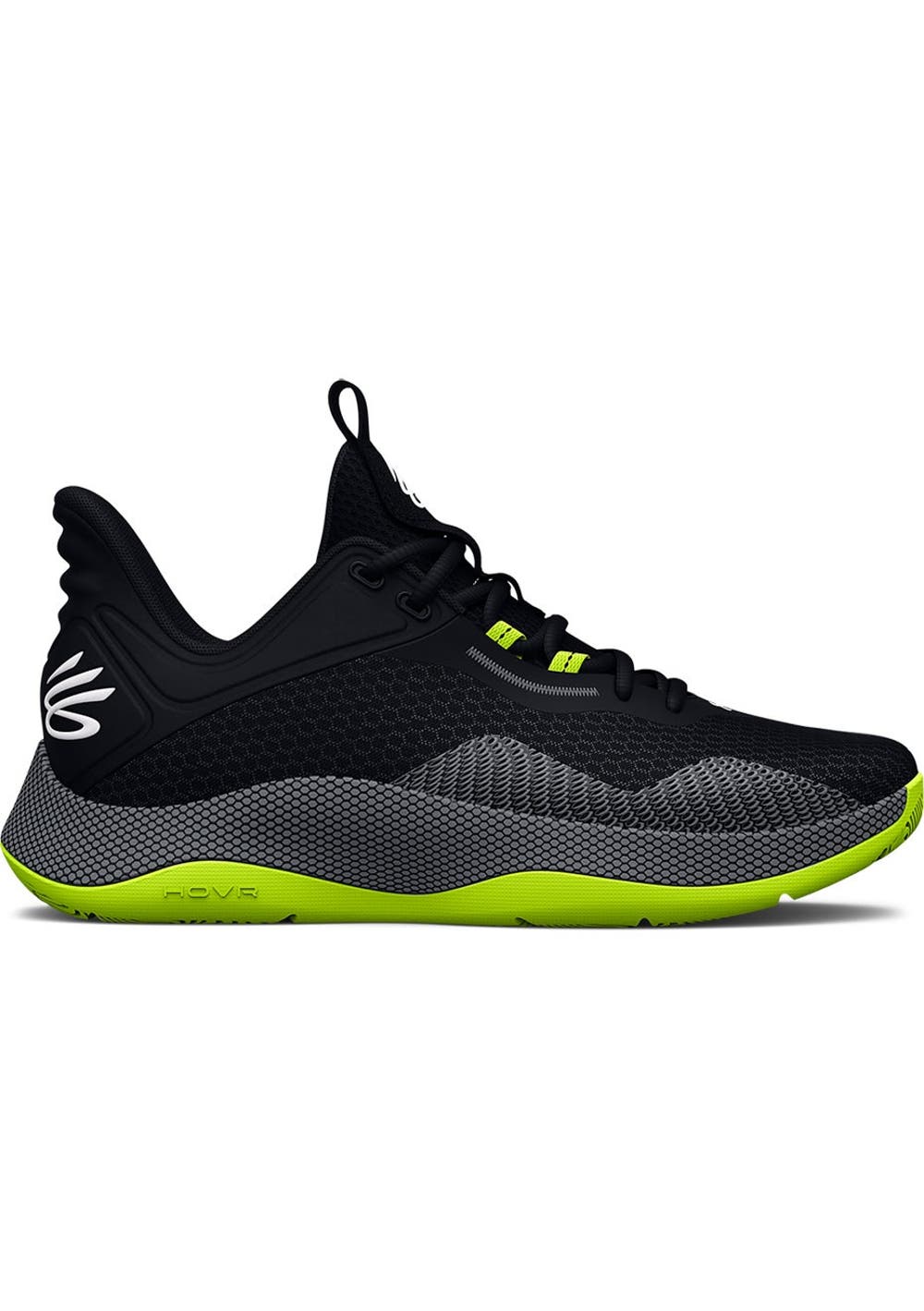 Inspired by streetballers everywhere, these shoes are tough enough to own any court. A durable rubber outsole, open breathable mesh, and abrasion-resistant overlays let you ball everywhere from hardwood to blacktop. · Breathable mesh upper with 3D-printed details for added abrasion resistance where you need it · Molded textile heel & collar for enhanced comfort · Half-bootie design for superior fit, comfort & lockdown · Plush foam sockliner for increased underfoot comfort · UA HOVR™ cushioning returns energy to get you where you're going faster · Full rubber outsole for enhanced traction & durability · Style #: 3025636 · Weight: 13.3 oz. · Lace type: Standard tie · Imported · Regular
