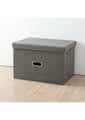 Collapsible Storage Bins with Lids and Handles - L<br>Material: Cardboard, Polyester non-woven fabric<br>Product dimensions (LWH): 44x29x30cm<br>Package dimensions (LWH): 45x31x4cm<br>Weight: 1.17Kg<br>Features:<br>• Additional Storage Space: This fabric storage box is designed to meet various storage needs, providing additional storage space for organizing sundries effectively.<br>• Intimate Design: The storage box comes with a lid to keep items protected from dust, ensuring they remain clean and tidy. The handles on both sides make it convenient for you to move the box around.<br>• Space-Saving: This storage box can be placed on cabinets or under the bed, and it can be easily folded up for storage when not in use, helping you save space.<br>• Smart Storage: Perfect for storing clothes, magazines, books, toys, CDs, newspapers, office supplies, and more. It is suitable for use in various rooms such as the living room, bedroom, store room, conservatory, playroom, etc.<br>• Easy To Clean: The storage box can be easily cleaned by wiping it with a soft cloth. However, it is not washable, so it's essential to keep it dry. Its simple and retro fashion style complements any decoration.<br>Package Include:<br>• 1 x Linen Collapsible Storage Bins with Removable Lid<br>