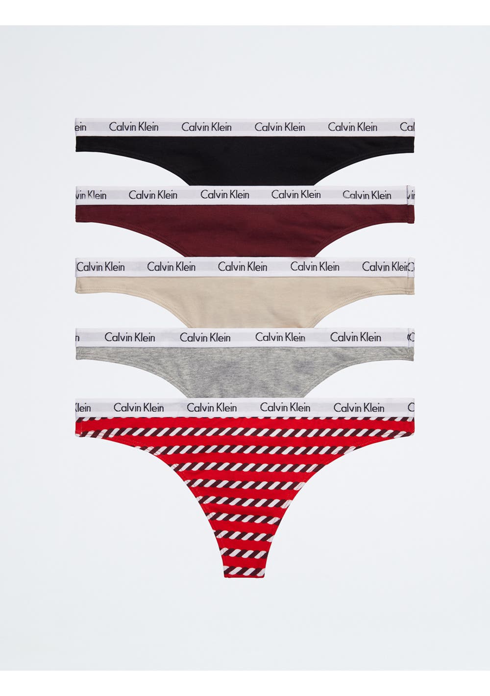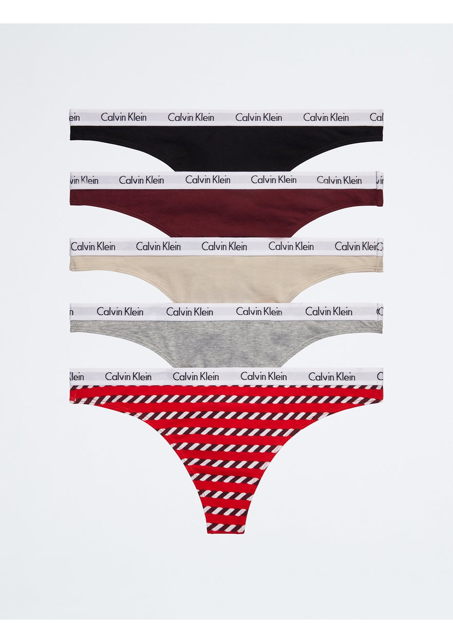 Calvin Klein - Womens Carousel Thong 5 Pack Tawny Port/Rogue/Black/Peyote/Grey Heather