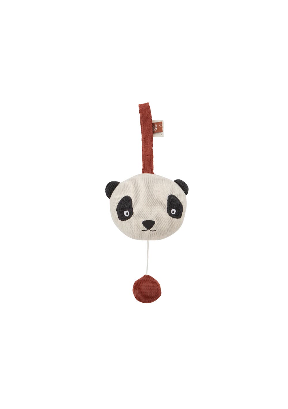 The cute Panda Music Mobile will surely soothe and make your child fall asleep. The music is calm and gentle and will play by pulling down the bottom. The music mobile is made of 100% cotton, plain knit. It has a velcro closure at the top, so it easily can be attached to the bed. Color: Offwhite / Black Quality: 100% Cotton, 100% Polyester Filling Dimensions: H4 x L5.2 x W3.1 in