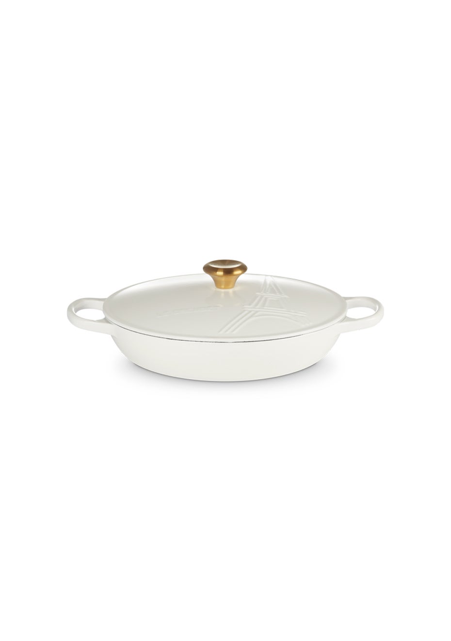 Le Creuset - Signature Shallow 30 Eiffel Tower White (Gold Knob) - White