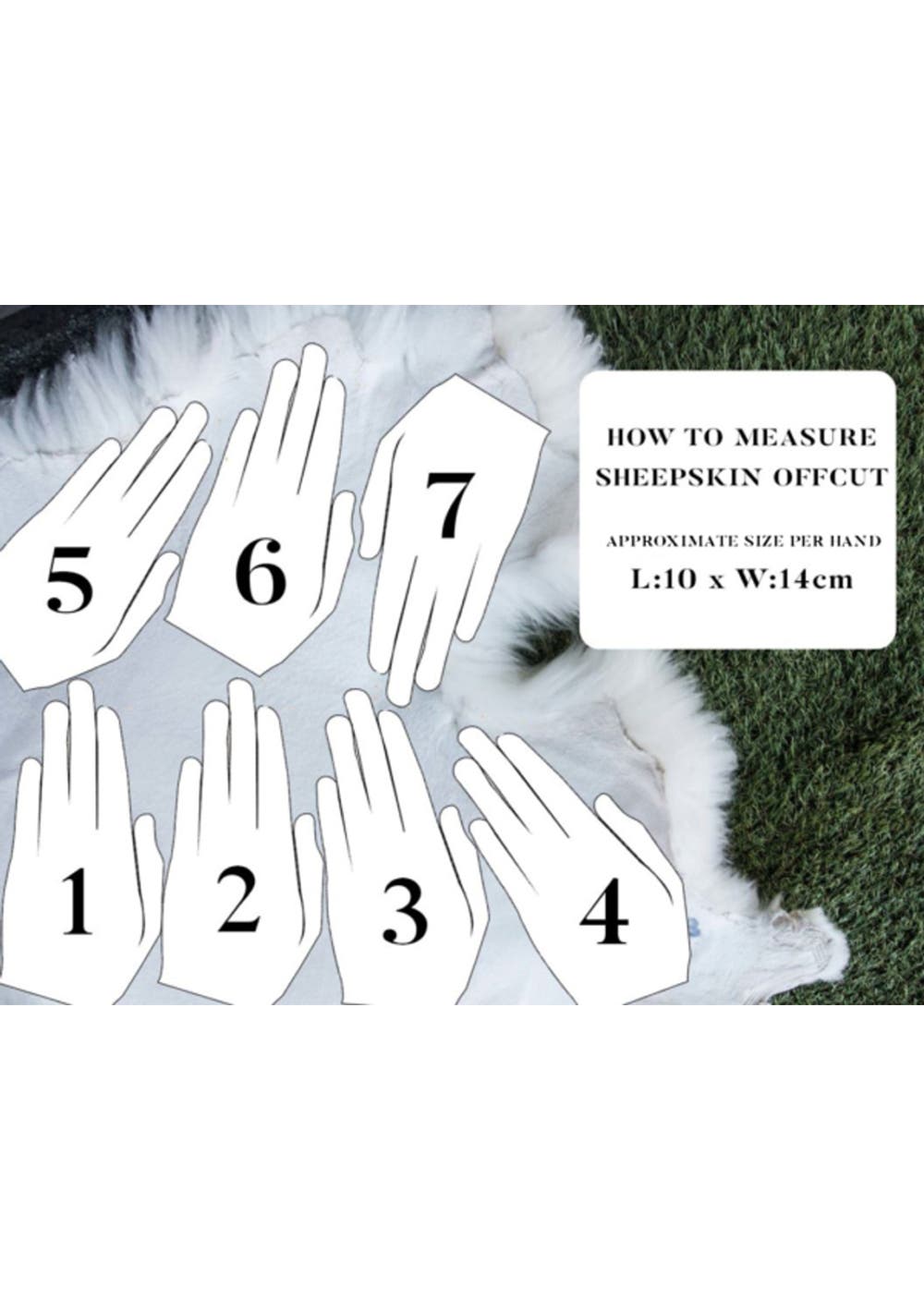 These offcuts have irregular and uneven size and shape. Thus, we measure these by Hand Size to make things easier. The indicated size below covers the whole area of the suede part of the sheepskin.