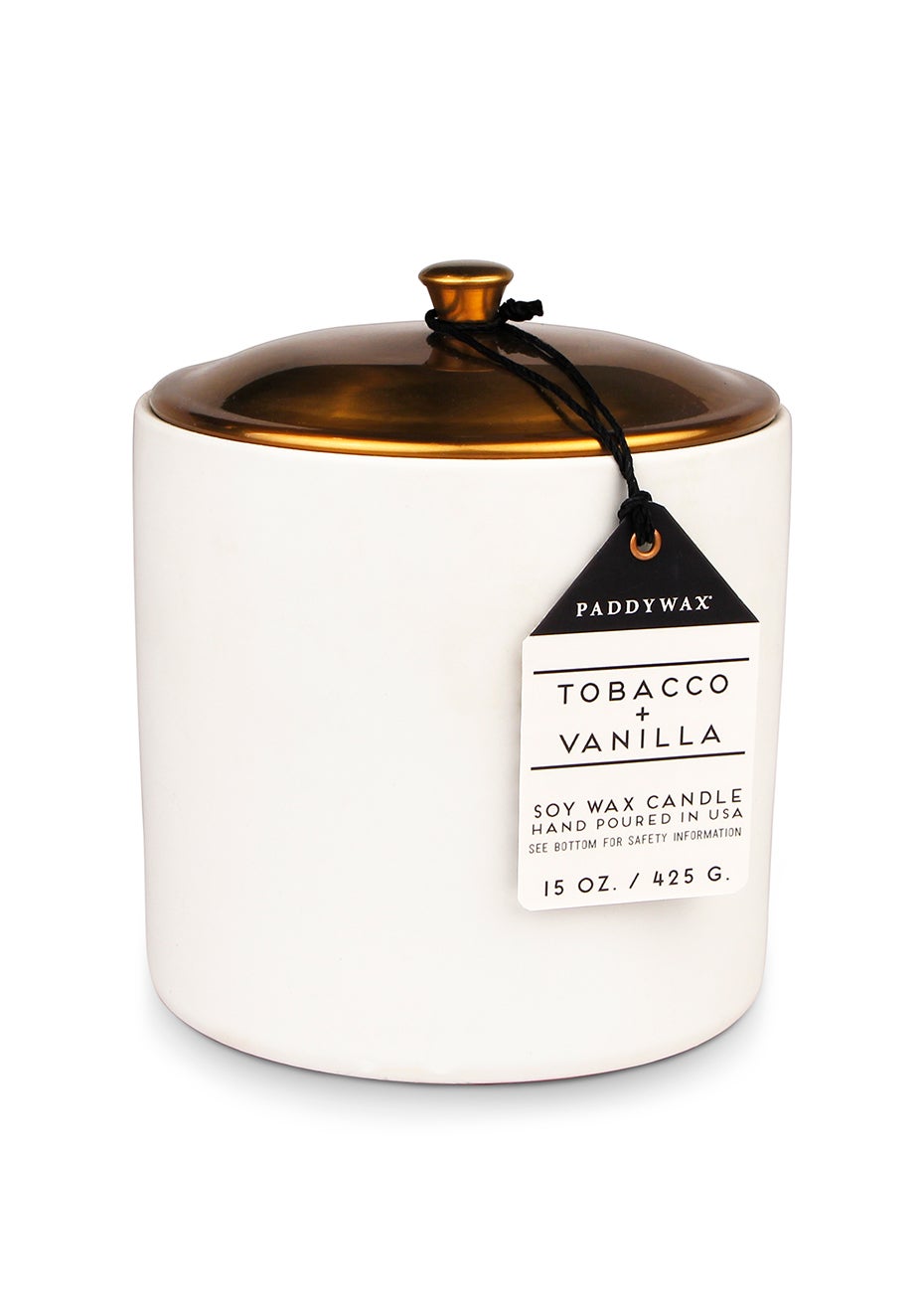 Paddywax - Hygge White Ceramic Candle 425g - Tobacco & Vanilla