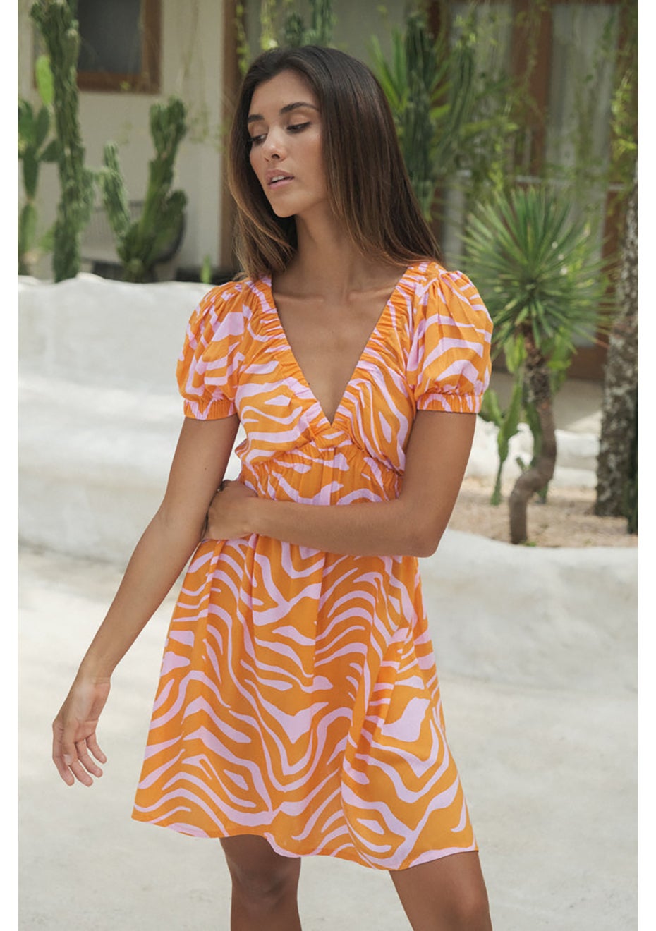 Florencia The Label - Sorrento Mini Dress - Zebra Pink Orange
