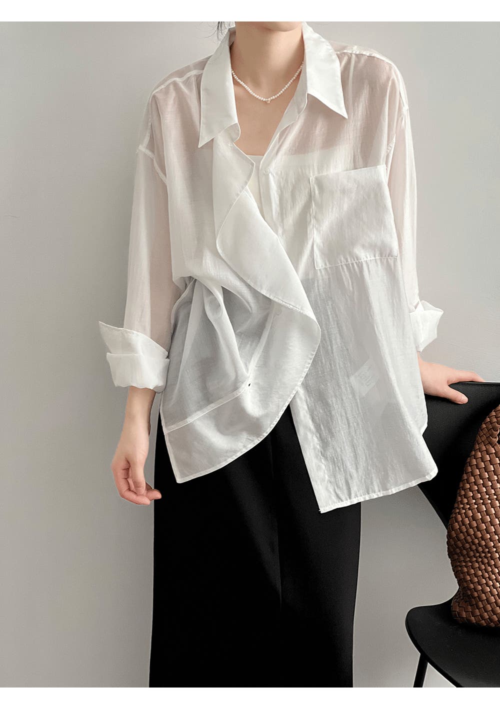 White Women Side Slit Long Sleeve Sunscreen Shirt