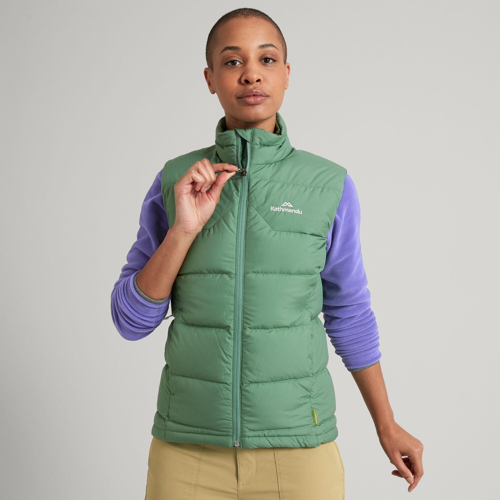 Immerse yourself in the outdoors with the latest Epiq Women's Down Vest, which will keep you toasty as temperatures plummet. This classic outdoor vest has recycled outer fabric that lets the insulation give you maximum warmth. Trust it for protection against the cold on your next adventure.Part of our heritage - the Epiq is a Kathmandu icon. Material: Outer Composition - Pertex Quantum Eco, 100% recycled mini Ripstop Polyester with DWR treatment, Composition - is certified as bluesign approvedInner Composition - 100% Nylon Taffeta, Composition - is certified as bluesign approvedFill80% Duck down 20% Duck featherContains RDS certified down, certified by CU 862405Fill Power600Fill . Weight: 80.5 g (. Size 10) . Weight: 400 g (. Size 10) . Department: Women's. Style: A0960 Care Instruction: When properly cared for, your Kathmandu down jacket can last for ages! And washing it on the reg will ensure it’ll perform at its absolute best.