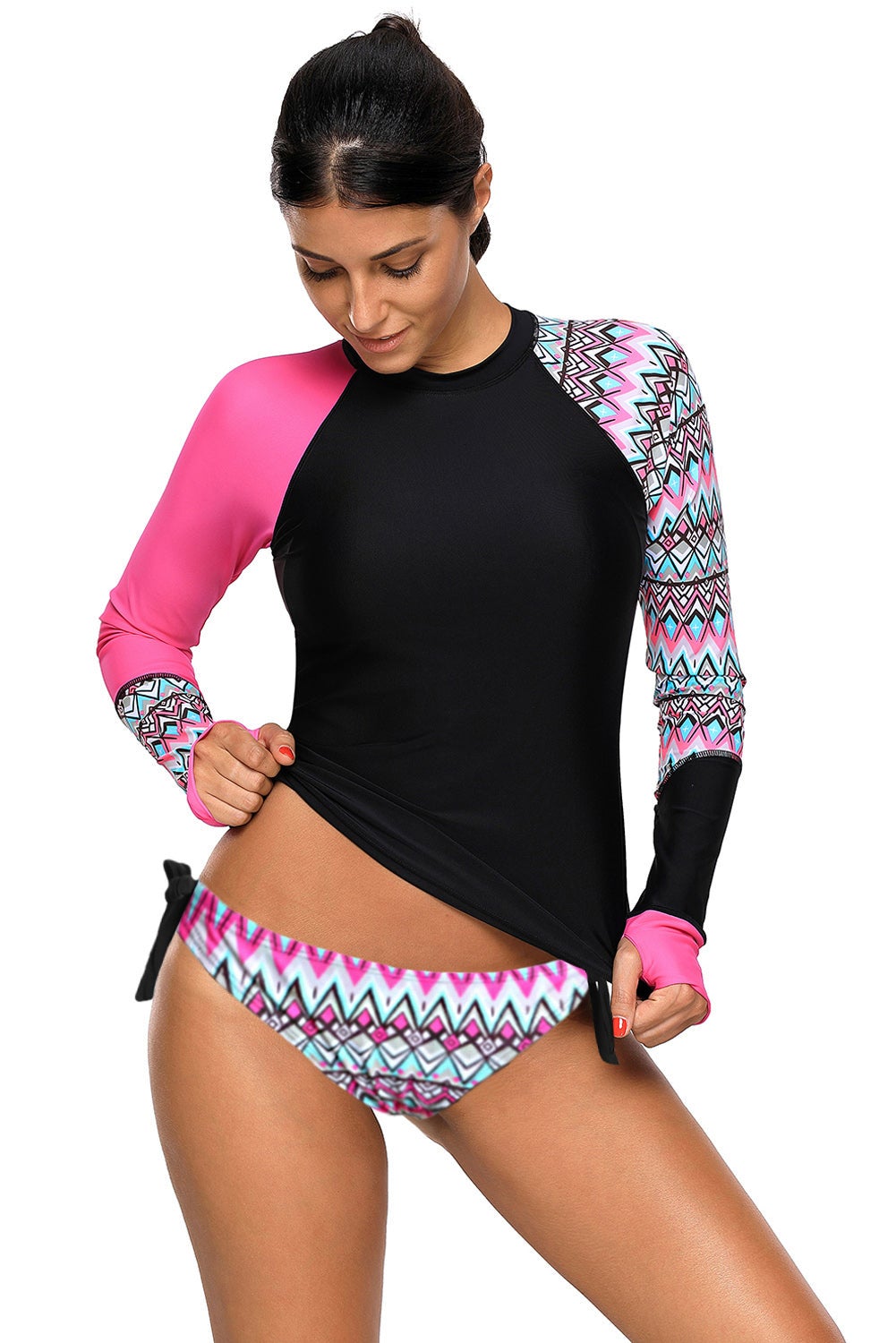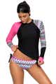 Contrast Rosy Detail Long Sleeve Tankini Swimsuit