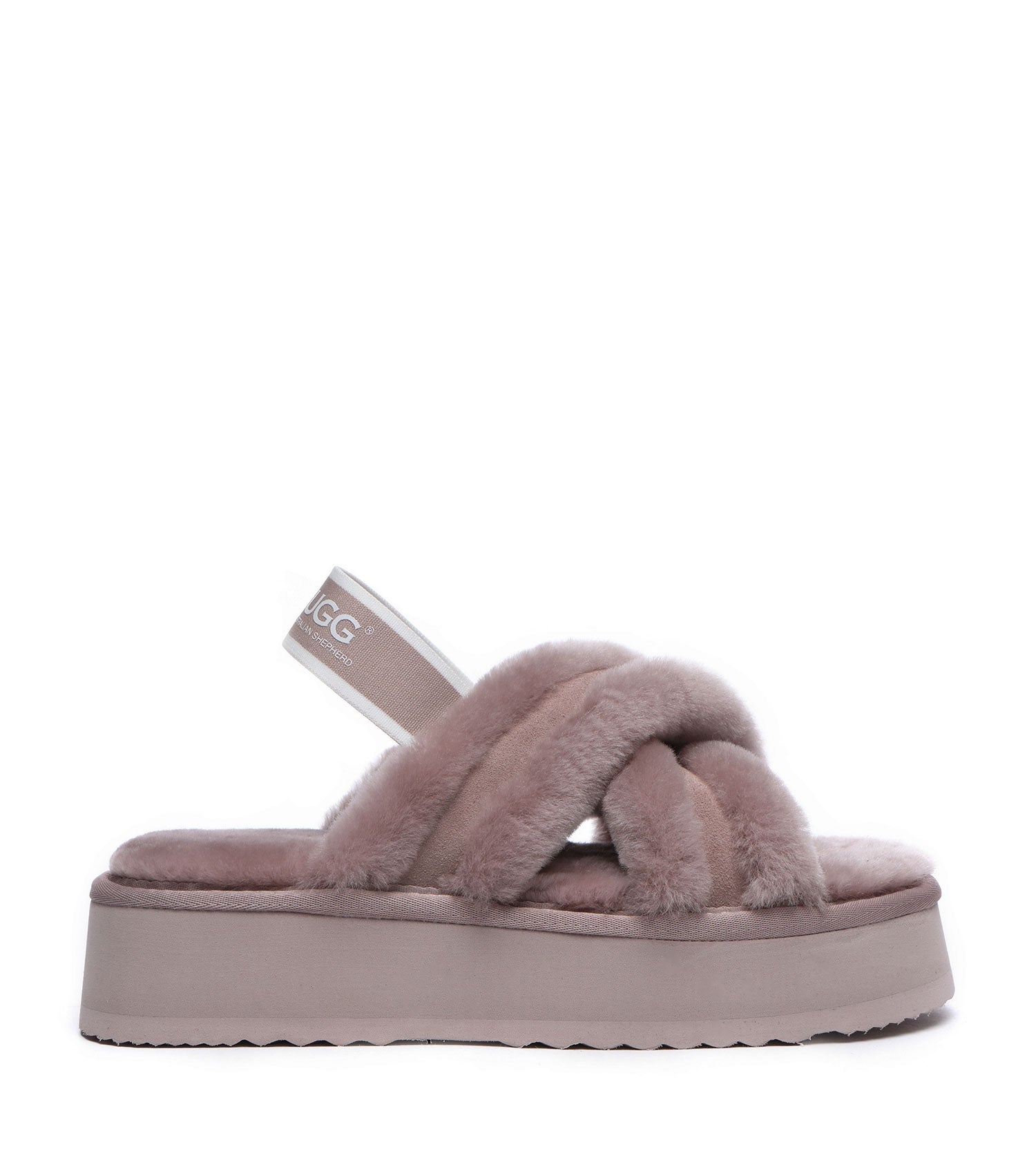 Aditi | Brand: UGG AUSTRALIAN SHEPHERD | Gender: Women | Product Type: House Shoes | AS UGG Women High Platform Cross-over Fluffy Slides Aditi #AS2052