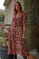 Dress up in style with this beauty! The chocolate brown base makes a perfect canvas for the floral print, while the deep V-neckline, shirred waist, and puff sleeves are sure to keep you looking cute and feeling cosy. Show off your look and kick up your heels with a gorgeous number like this!