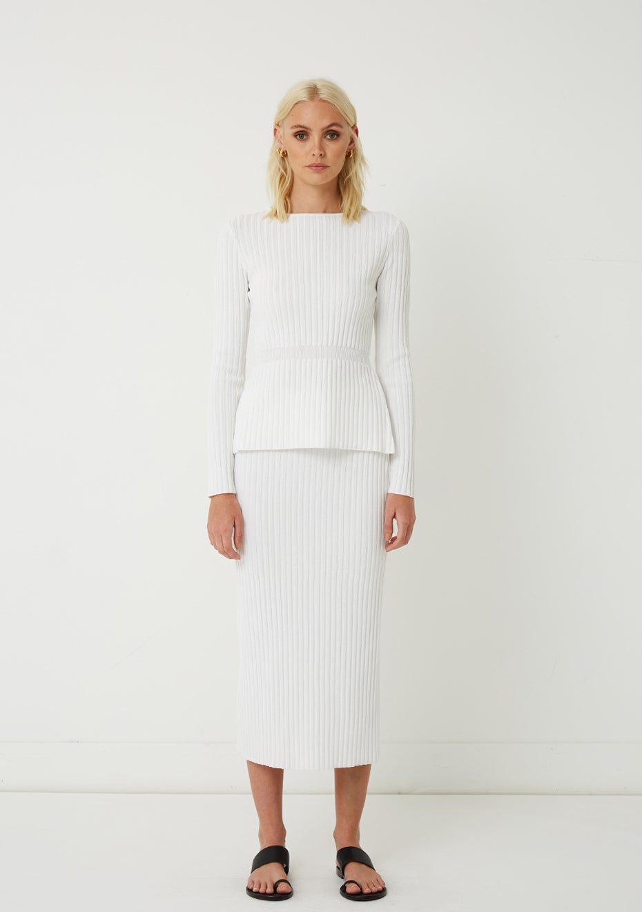 Friend of Audrey - Bette Longline Ribbed Knit Midi Skirt - White