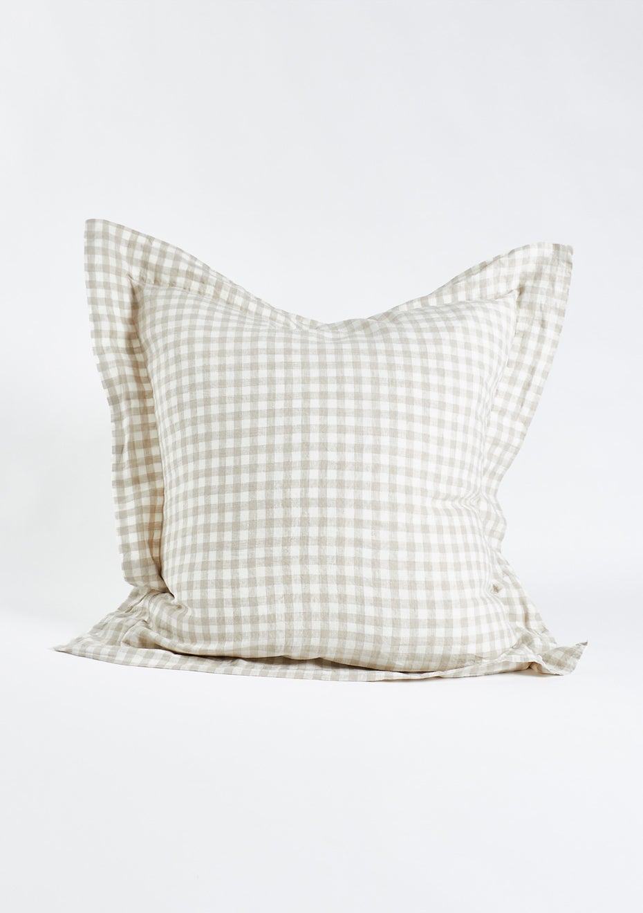 George Collective - 100% Linen European Pillowcase - Natural Gingham