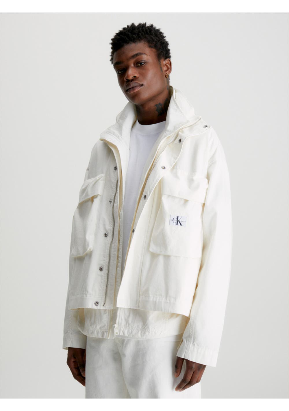 Calvin Klein Jeans - Mens Cropped Cotton Twill Zip Up Jacket - Ancient White