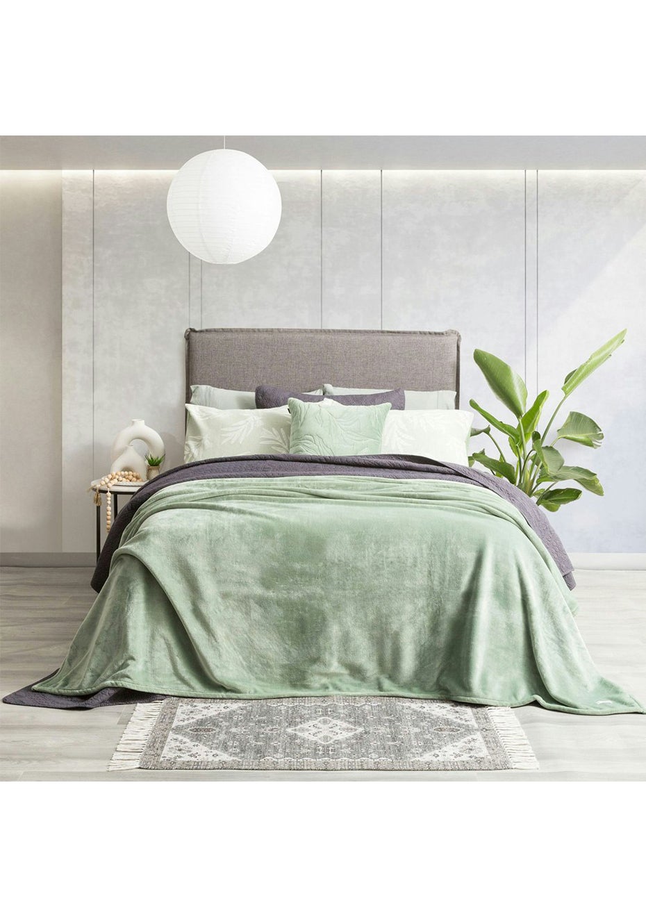 Renee Taylor Plush 380 GSM Ultra Soft Velvet Blanket Single/Double Eucalyptus