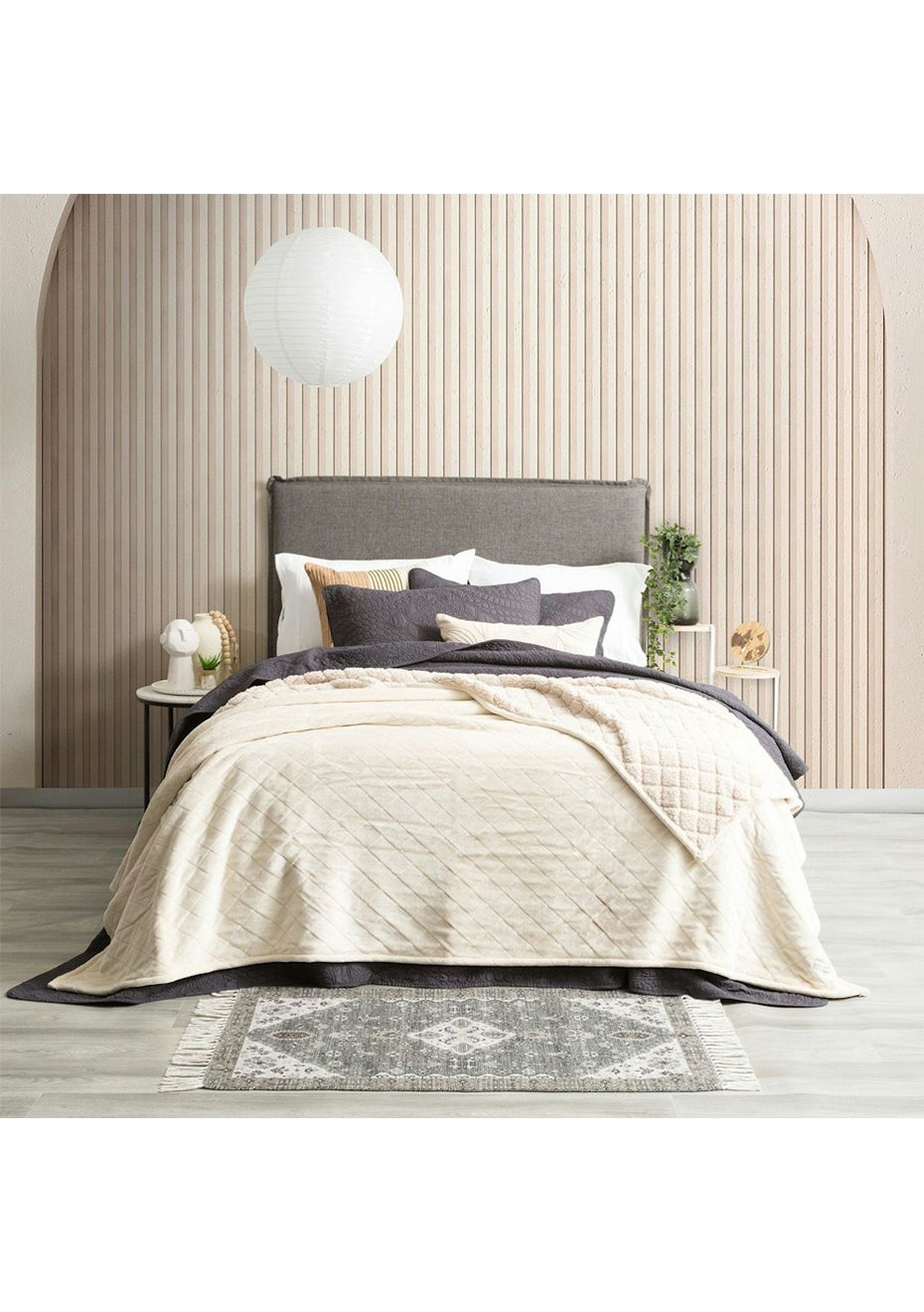 Renee Taylor Heston 480 GSM Ultra Soft Velvet Sherpa Blanket Discover the epitome of winter comfort with Heston ultra-soft velvet Sherpa Blankets. Crafted from luxuriously soft velvet and adorned with exquisite diamond cut pattern, these blankets not only offer style but also provide unparalleled warmth. The plush sherpa reverse ensures a cozy embrace, making it the ideal companion for snug and delightful moments. Embrace the season with the ultimate in softness and style. Features: - Front - Ultra soft velvet & Reverse - Sherpa - Incredibly warm with anti-pilling properties. - Features a diamond pattern with a clean edge. - Winter essential for cold days. - Generously big & machine washable. - STANDARD 100 by OEKO-TEX® Certified. Size: Super King Blanket: 300 x 240cm Products containing bleach can damage this product. Blankets are a decorative item that can infuse a space with colour and comfort. It is not advised to use them as chair or couch coverings. They are not built to sustain the kind of extreme wear and tear that a sofa can.