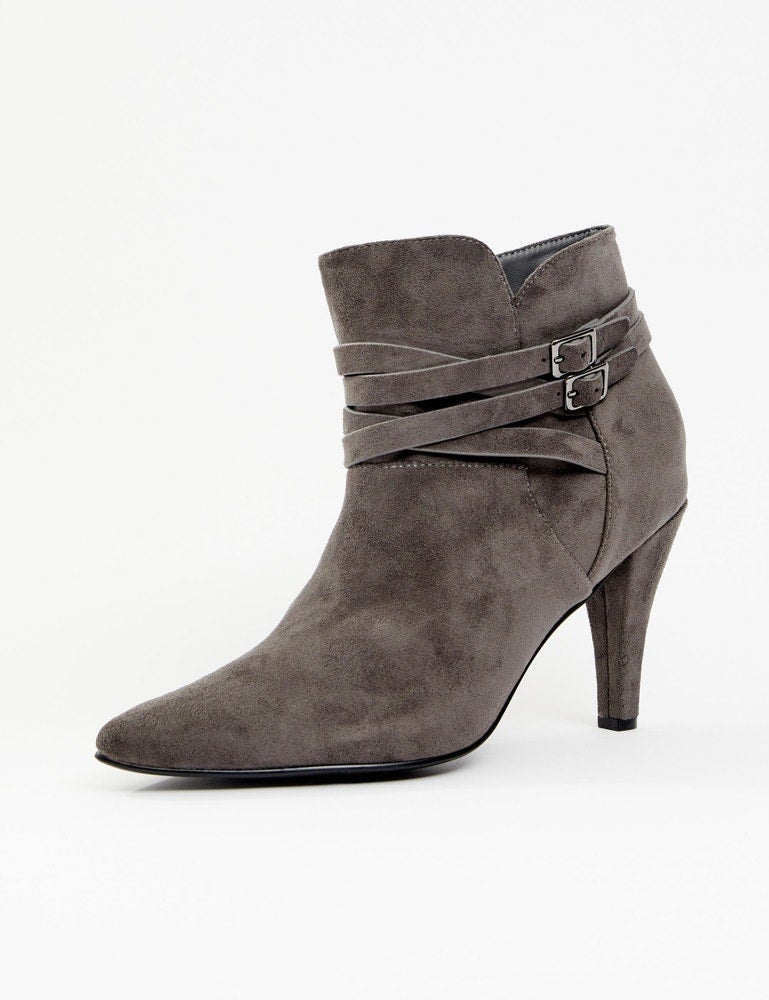 AUTOGRAPH - Womens Winter Boots - Grey Ankle - Casual Shoes - Heeled Footwear - Zip Up - Buckle Strap Detail - Pointed Toe - Formal Work Fashion