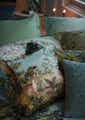 Decorative cushion Winter Blooms has a design made up of richly decorated plants, shrubs and flowers. The print, inspired by antique jacquard woven wall hangings, has a coarse woven look.The back of the cushion has a light blue stylized tile print with refined details. The cushion has a quilted, all round oxford edge.The cushion is reversible giving you the choice of two sides to mix and match to suit your own style. The cushion is made of 100% percale cotton, 200 TC. Percale is a fine woven cotton of high quality. The cushion is 45 x 45 cm. The cushion can be washed at temperatures up to 60 degrees, is suitable for tumble drying, and can be ironed.