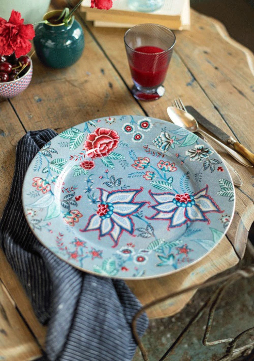 Add this Flower Festival 32 cm bottom plate to your porcelain collection. Our bottom plate has a blue background and is decorated with the elegant Flower Festival design. This rich floral pattern features a variety of fanciful red and pink chintz flowers with light blue and green leaves. The playfully positioned flower branches with elaborately decorated flowers and leaves give this elegant design an extra luxurious look and feel. Our Flower Festival porcelain will make your china cabinet and table shine.