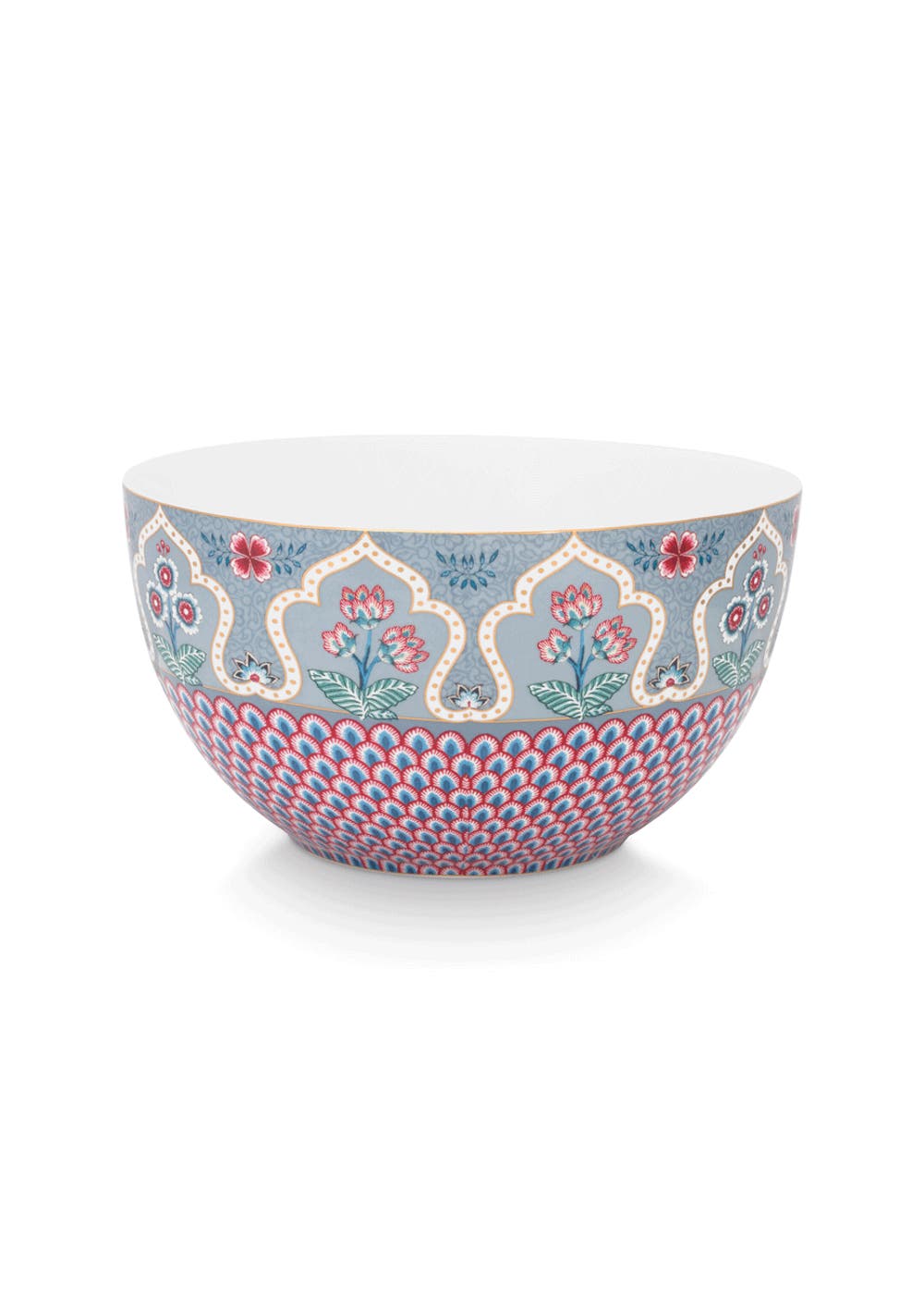 Add this Flower Festival 18 cm bowl to your porcelain collection. The bowl has a blue background and is decorated with the elegant Flower Festival design. This rich floral pattern features a variety of fanciful red and pink chintz flowers with light blue and green leaves. The playfully positioned flower branches with elaborately decorated flowers and leaves give this elegant design an extra luxurious look and feel. Our Flower Festival porcelain will make your china cabinet and table shine.