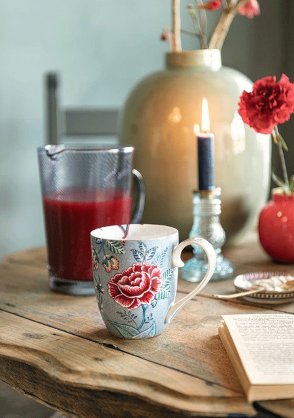 Set of 2 Flower Festival Light Blue Small Mugs - 145ml