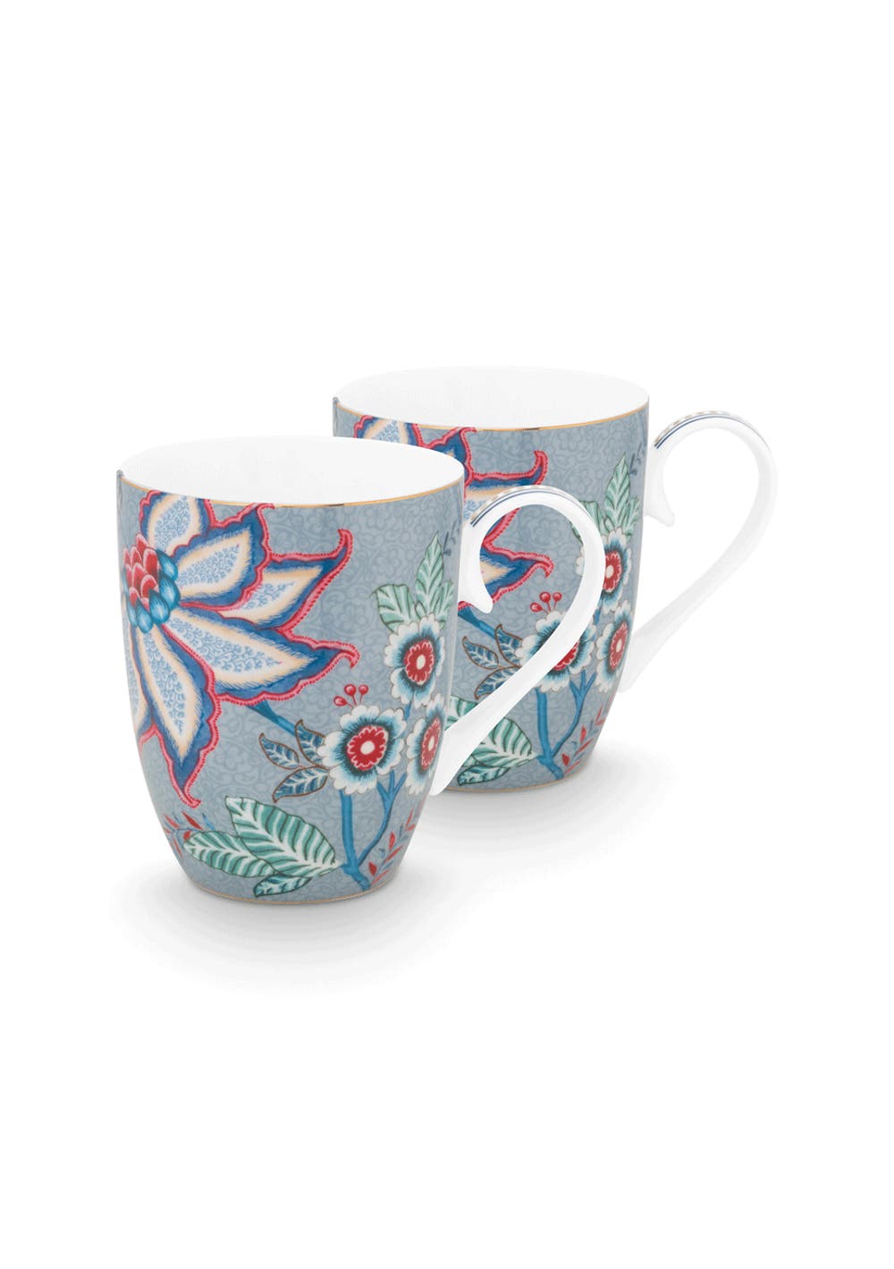Set of 2 Flower Festival Light Blue Large Mugs - 350ml