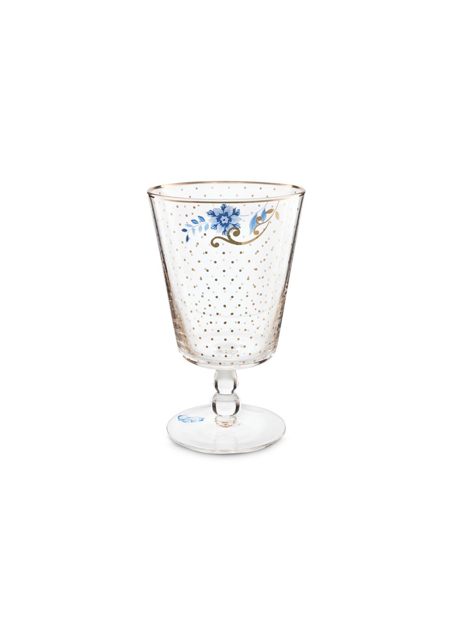 As part of our Royal collection, this clear glass is richly decorated with a distinctive blue flower arrangement, combined with a refined golden dot pattern. The edge is also lined with shiny gold details. 360 ml. Please wash by hand. It's not safe to use this in a dishwasher or microwave. Hand wash only in warm water. Do not rub design abrasively. No soaking in water. Don’t use abrasive detergents.